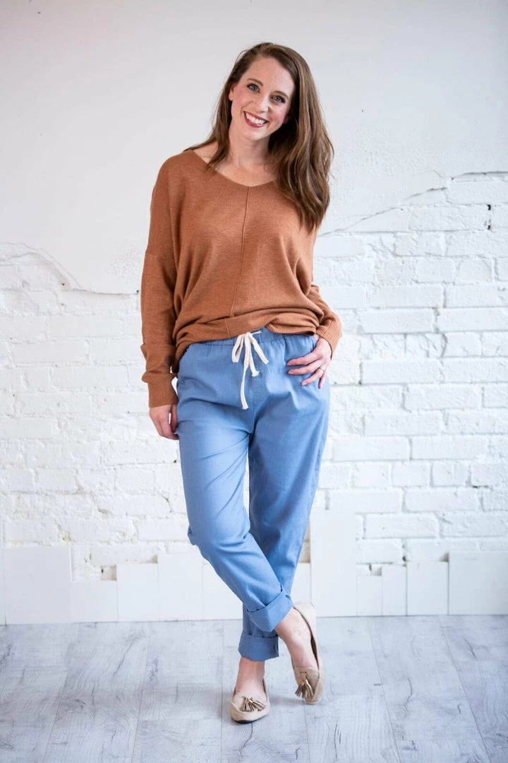 Finders keepers and we’re not letting these pants go! The cutest blue linen pants are here and ready to pair with your favorite sweater…..we recommend the Vancouver! The Finders Keepers Pant is sure to liven up any outfit. With a boot cut style, these blue pants are ready to spread some good autumn vibes!