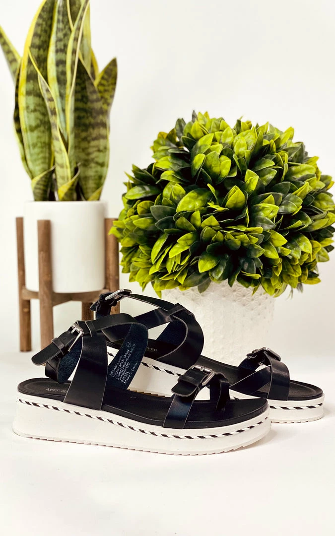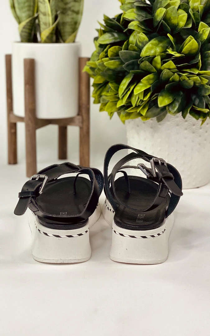 Our Enna sandal is trending! A beautiful white base is accented with a braided style design and black upper.
