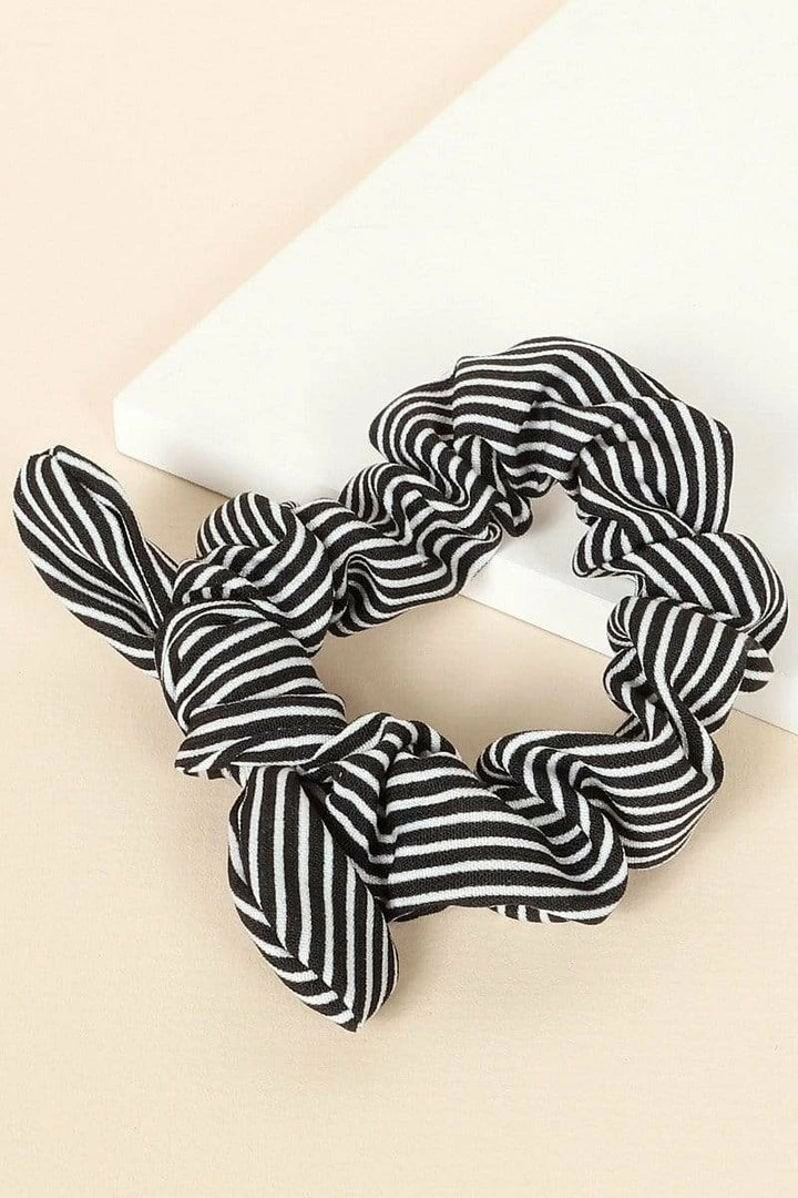 Description: Striped woven hair scrunchies with bunny ribbon tie.