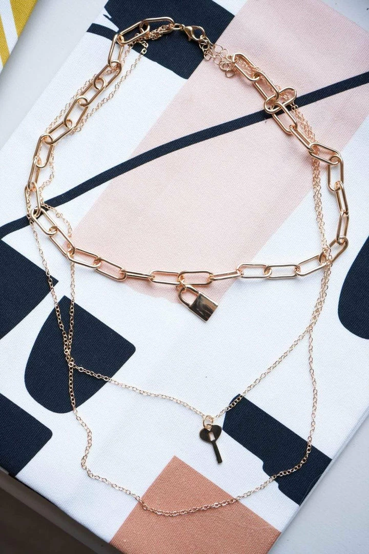 Avenue Zoe Apparel Lock And Key Charms Layered Necklace