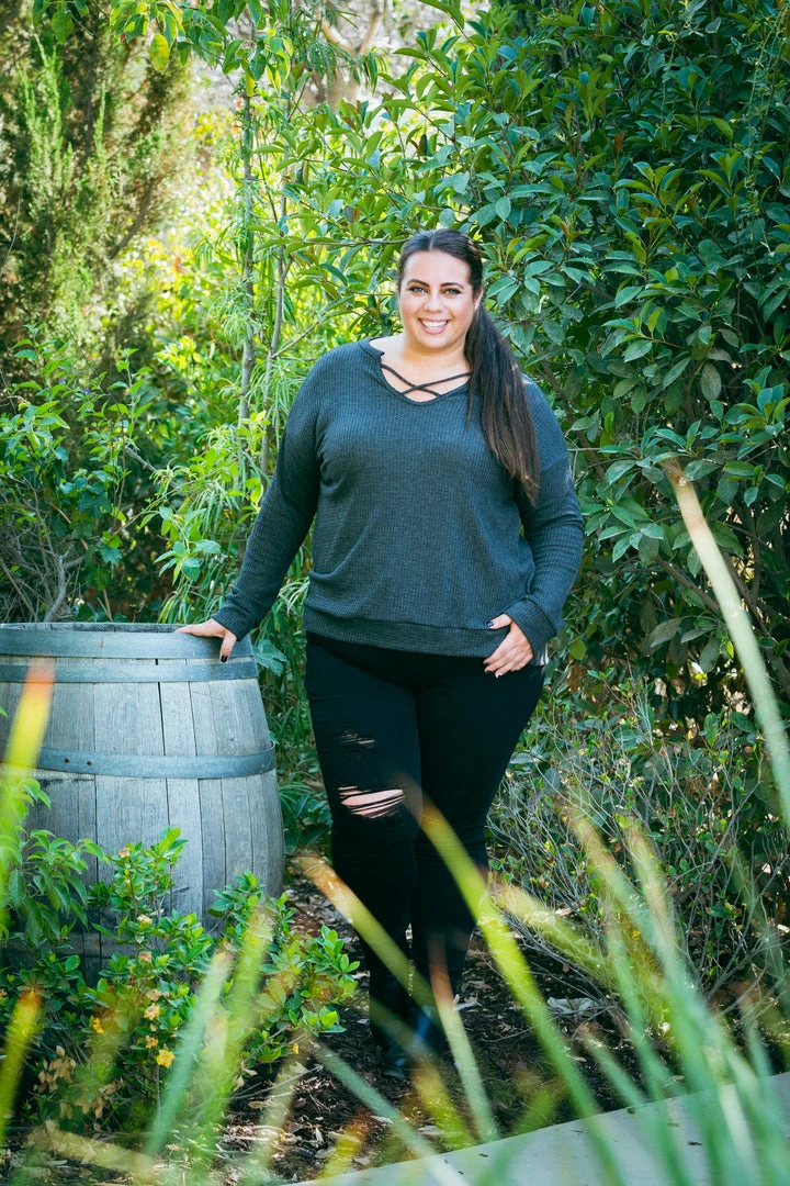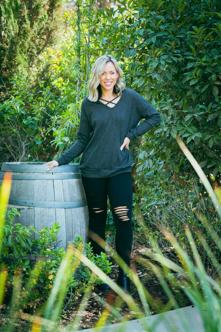 This brushed waffle knit top, is giving us all the happy feels. With a relaxed fit, this top features, long sleeves, v-neck with criss cross details and raw edging.