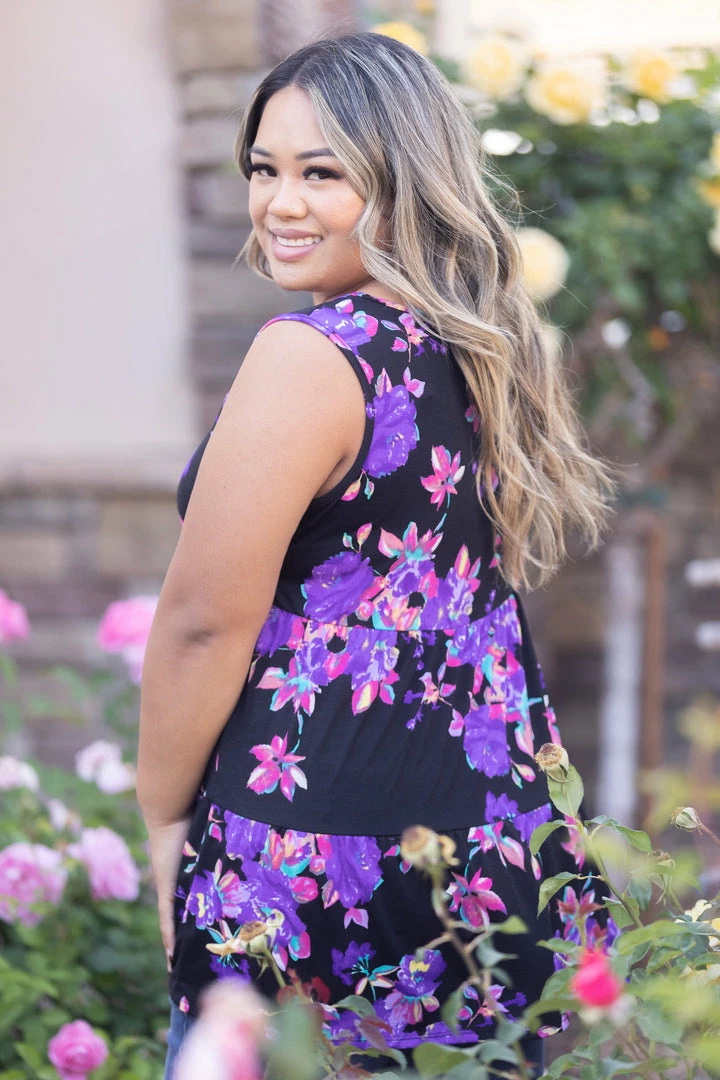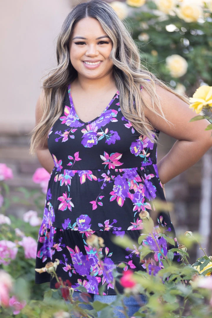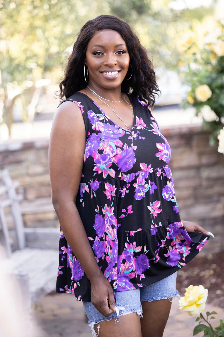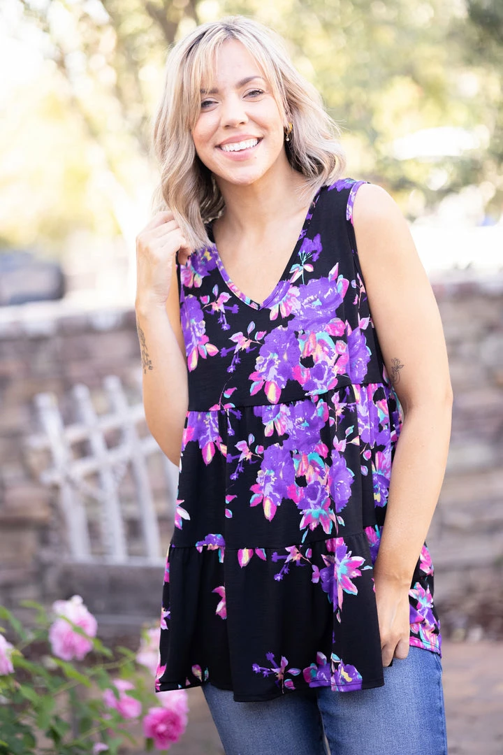 Made from amazing bulgari fabric, this sleeveless top is to die for. With a relaxed fit, this top features a v-neck and tiered ruffle hem.