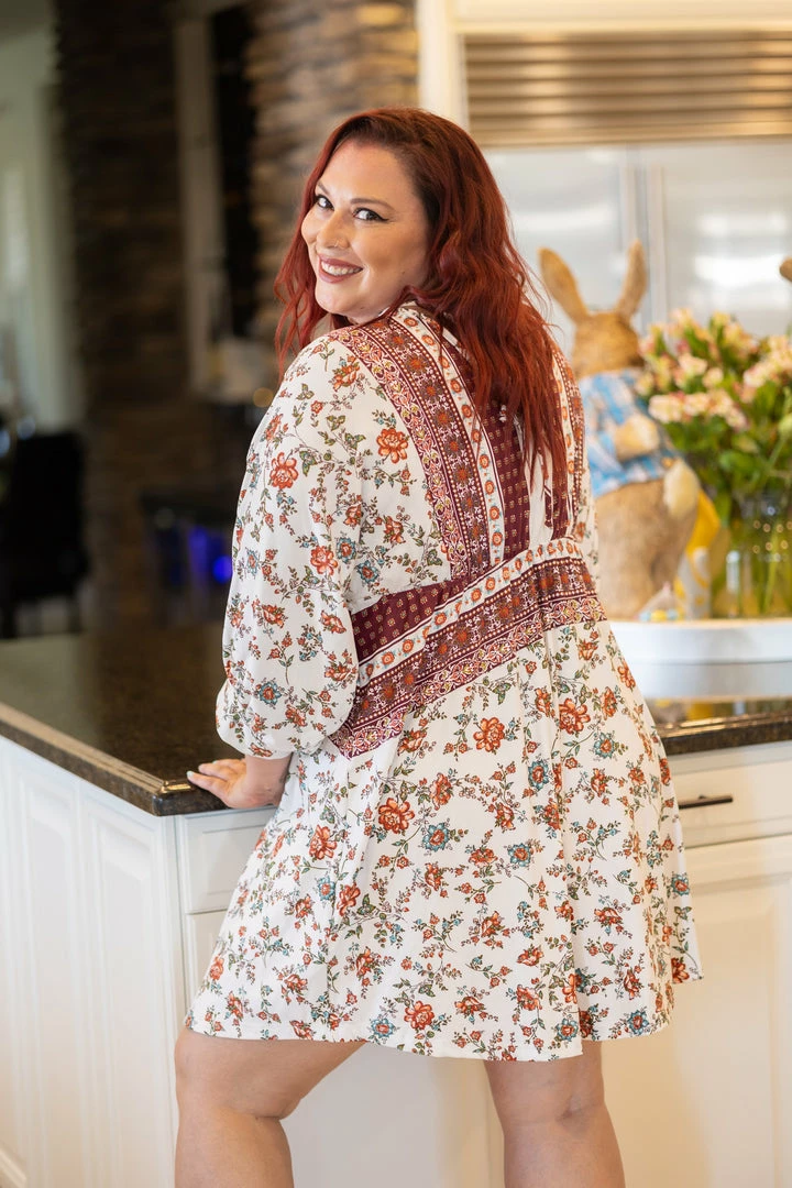 This buttery soft baby suede boho inspired dress is an absolute must have! With a slouchy fit, this dress features a v-neck, 3/4 dolman sleeves with a cuff, elastic waist and self tie back.
