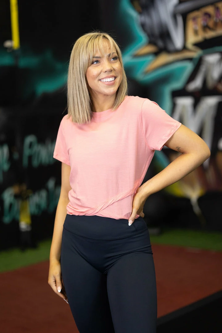 Let loose and have fun with this super simple yet trendy crop! Made from the softest jersey material, this top features a round neckline, short sleeves and trimmed edge detailing.
