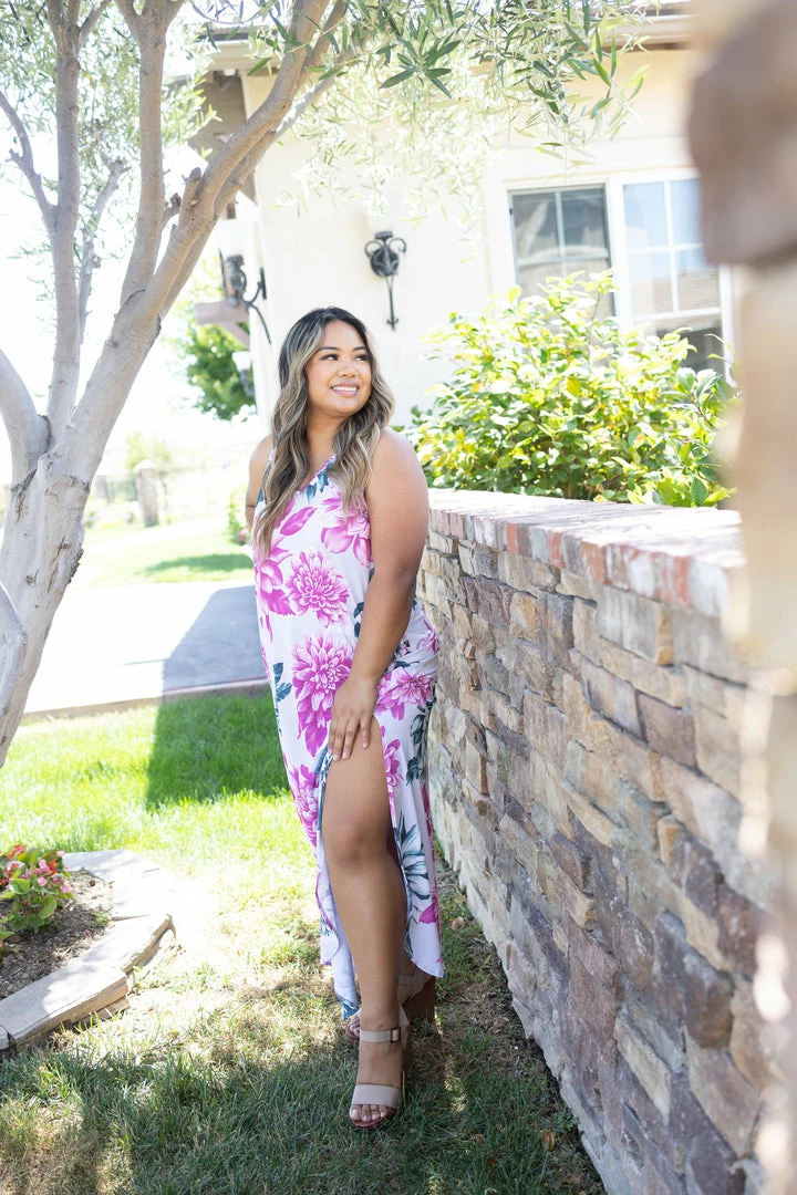 This stunning floral printed maxi is everything you’ve been looking for and more. Made from Bulgari fabric, this dress features a relaxed fit, V-neck, rounded hem with side slits, side pockets and full back coverage.