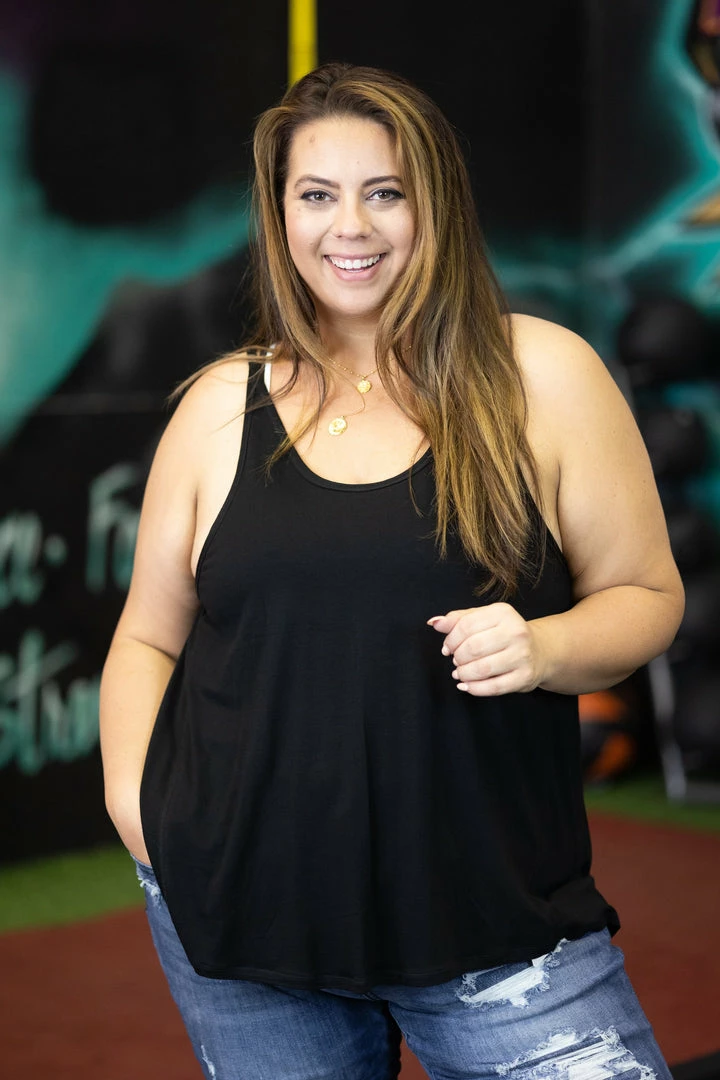 Wheather your running around town or heading to the gym this oversized tanks is the right amount of coverage while still letting you breathe! With a relaxed fit, this top features a scoop neck and open back detail.
