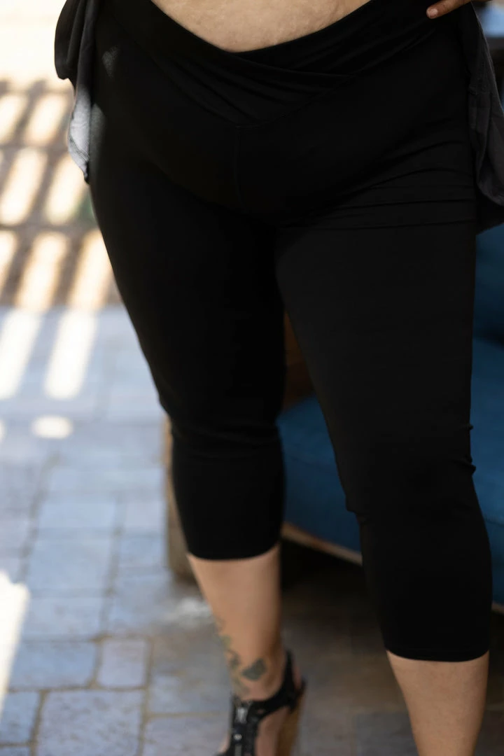 These super soft and stretchy leggings really give you the perfect curves! That overlapping v-band waistline make these pair of leggings absolutely unique and make them so easy to pair with your favorite crop. With a cropped 21″ inseam, throw on some tennies for a sporty look, or add some wedges for a dressier look.