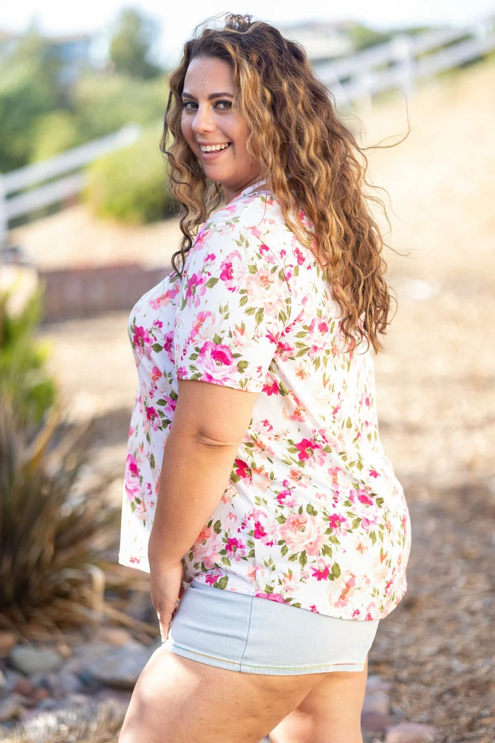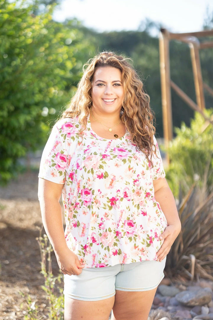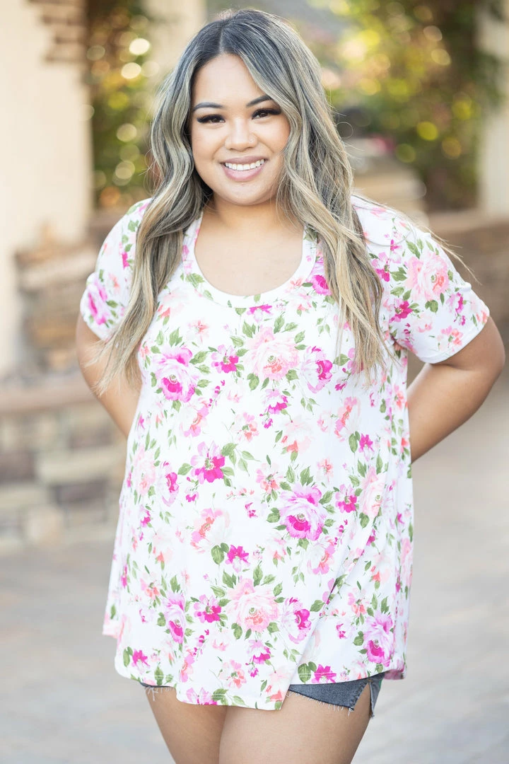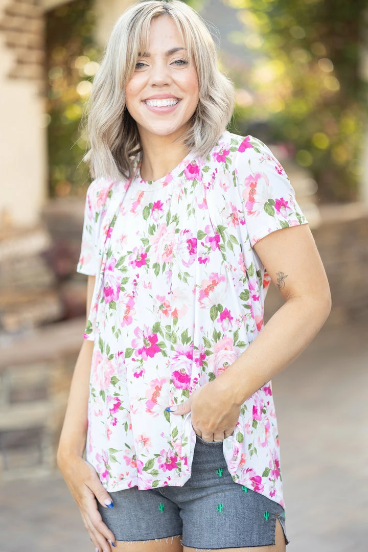 This short sleeve top will without a doubt make your life complete. With a relaxed fit, this top features a scoop neck with halter ties, short sleeves, an a-line silouette and rounded hem.