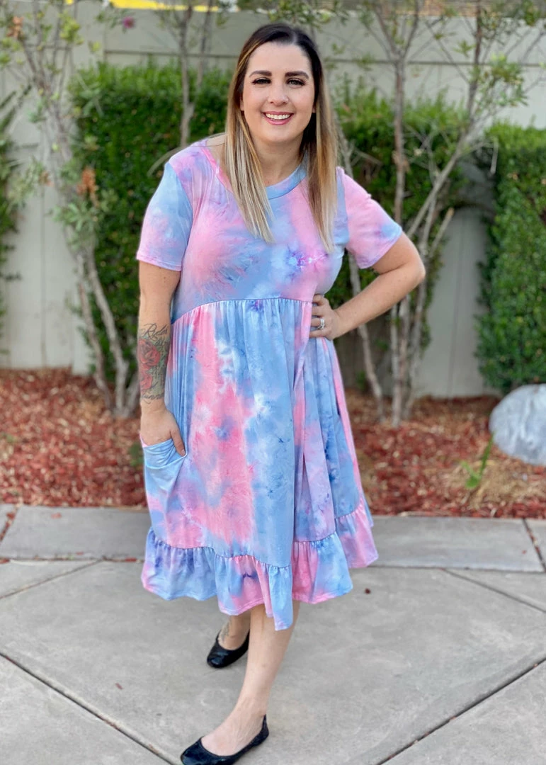 The most effortless dress you’ll ever wear. Made from a buttery soft baby suede, this dress features a relaxed fit, short sleeves, round neckline and POCKETS!