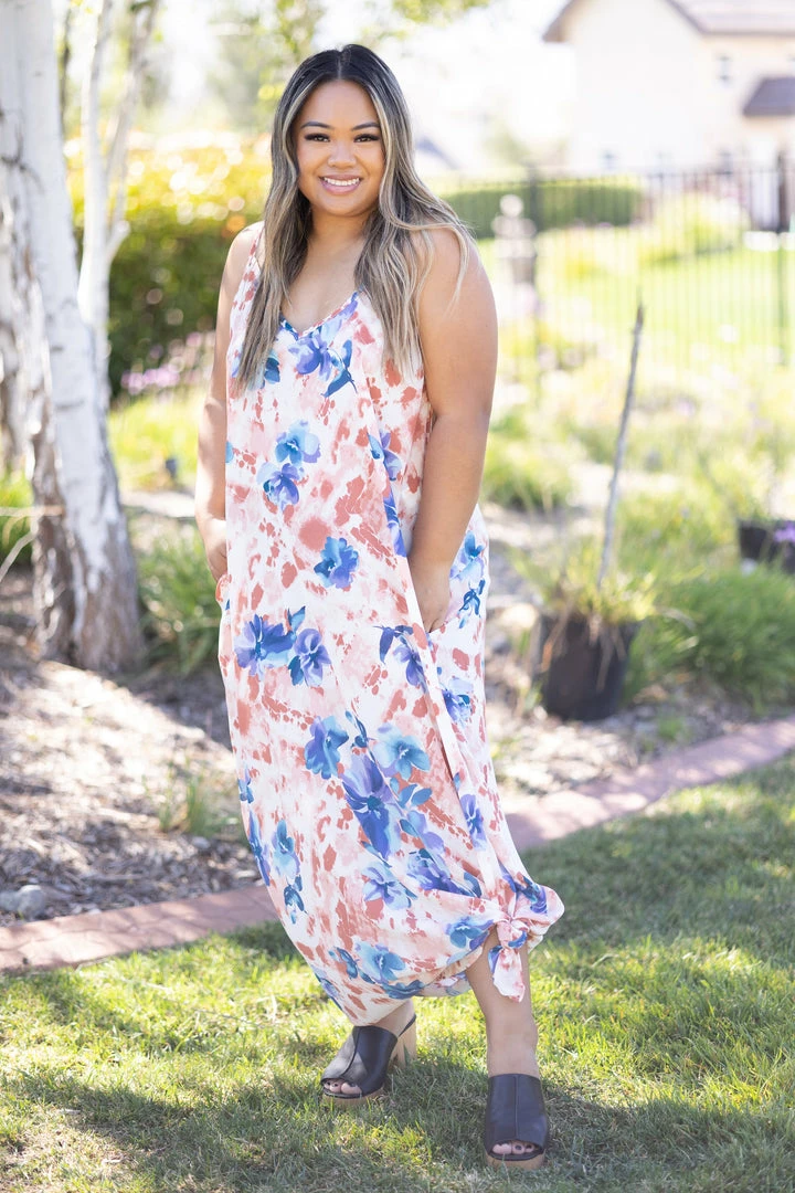 Flowy and majestic, this maxi dress will make all your dress dreams come true. Designed with a super slouchy silhouette, this dress features a v-neckline and side pockets!