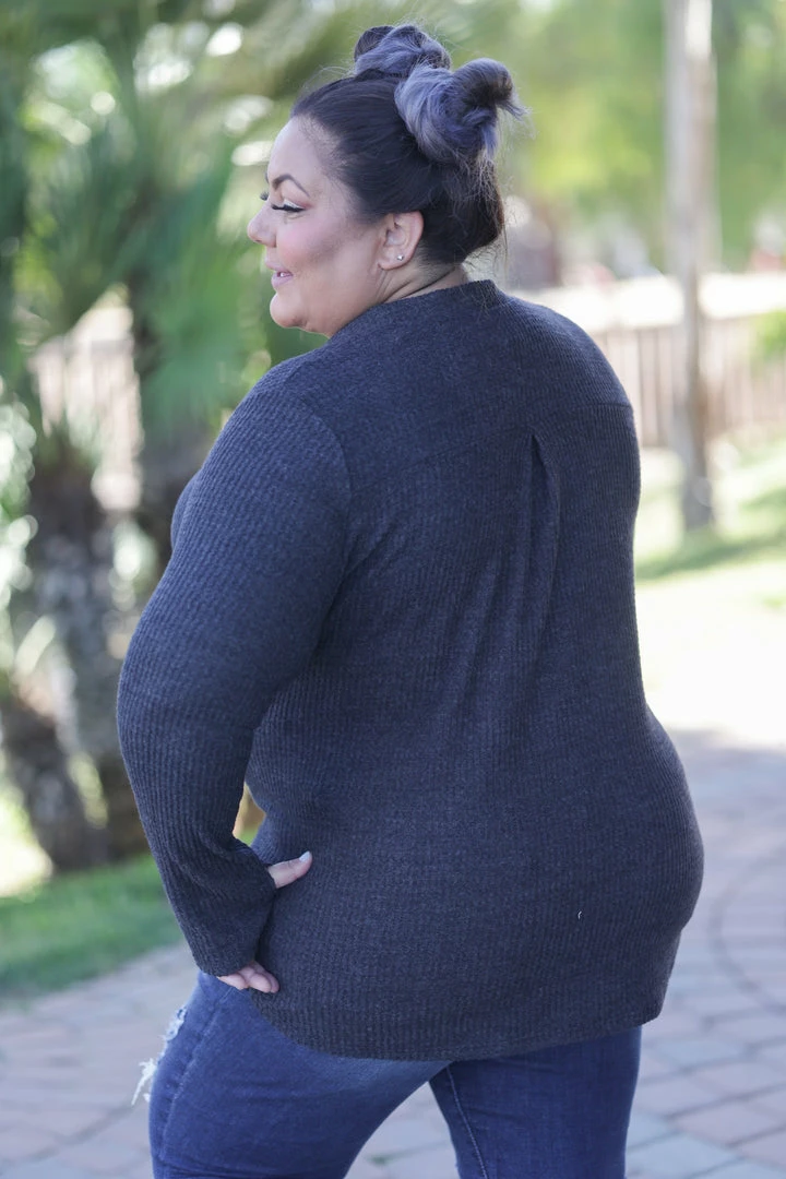 We are all already head over heels for the way the Gabby’s fit and feel, but to add thumbholes!! Yes please! Made from a light sweater material, this top features a relaxed fit, banded collar, v-neck and long sleeves with thumbholes!