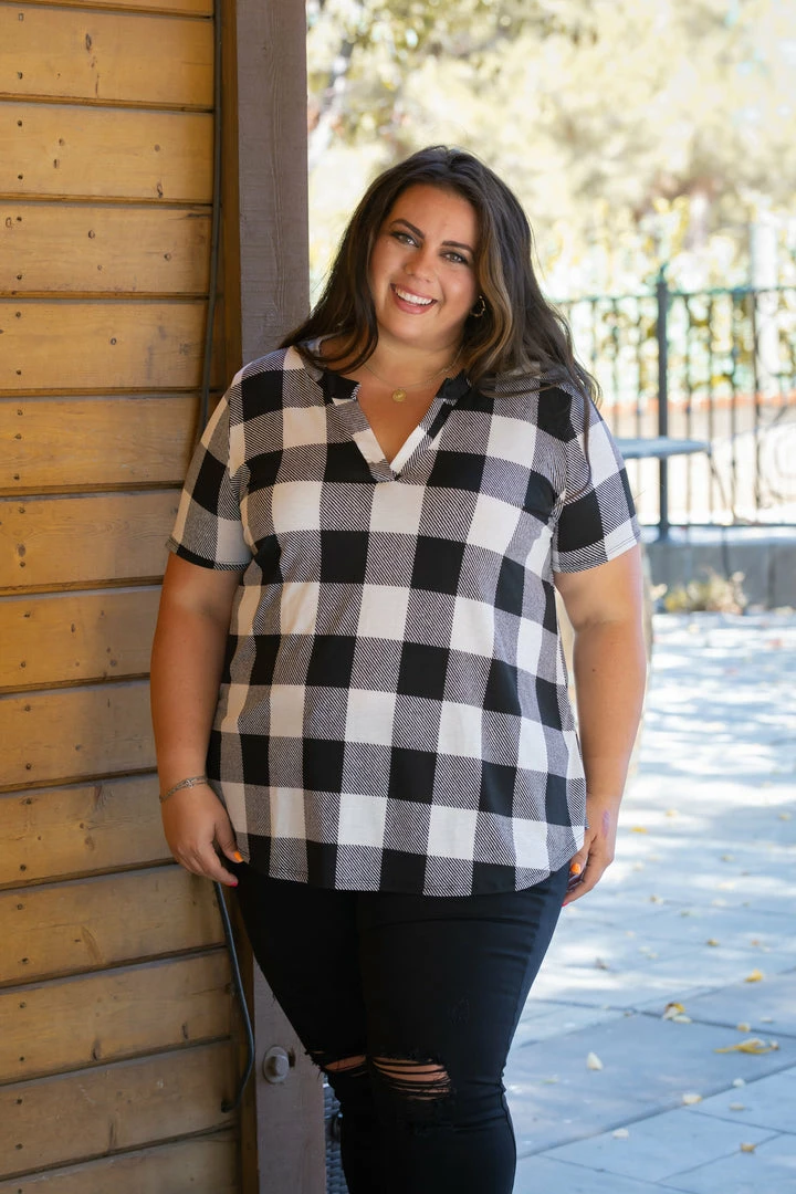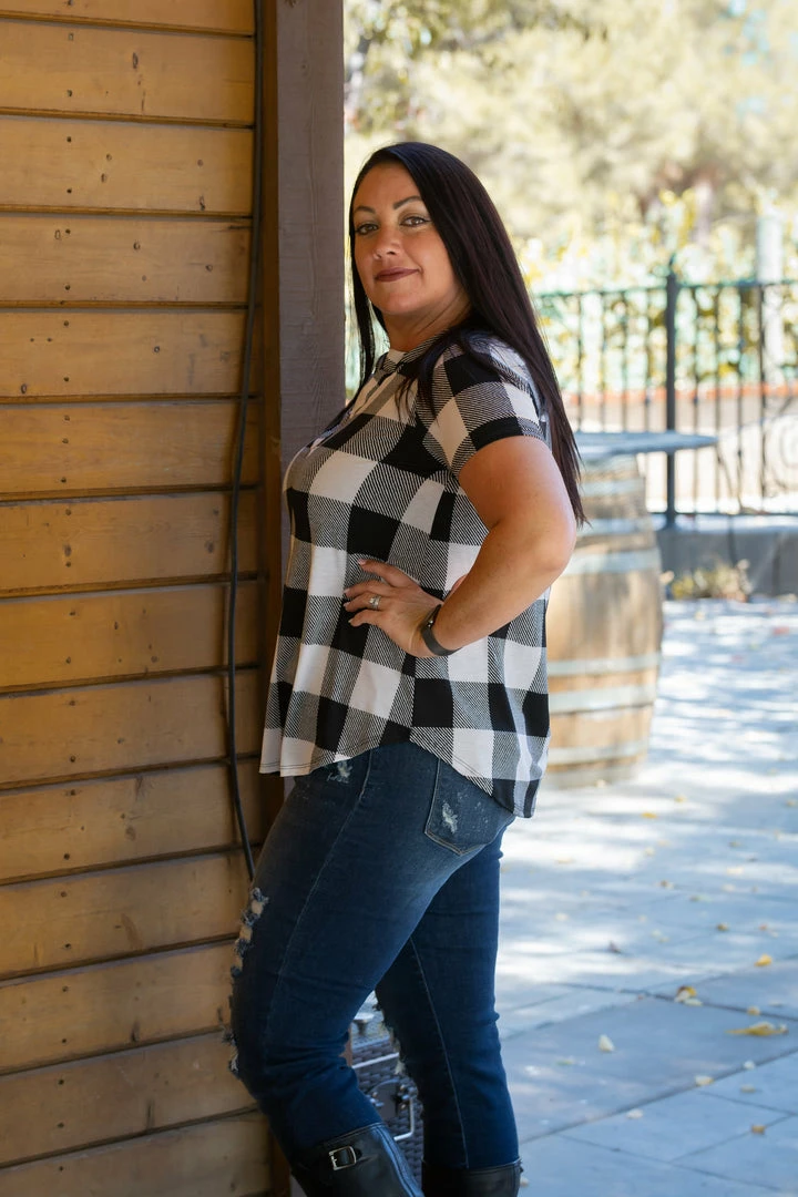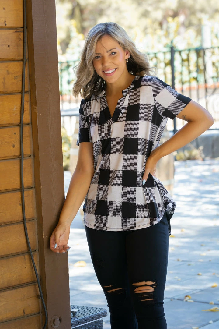 Searching for the perfect lightweight tunic? Look no further. Featuring a banded collar, v-neck and short sleeves, this top will make getting dressed seem effortless.