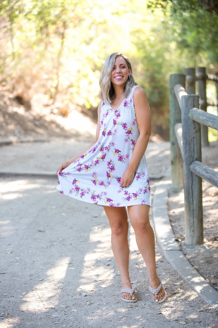 The MOST perfect swing dress in all the land, we can get over how stunning the burgundy florals are against this extreemly light blue background! Featuring the classic swing fit, with a v-neck and pockets! Best part, it can be worn as both a dress or tunic, so this piece will last through all the seasons.