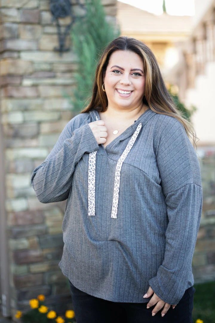 You won’t be able to live without this amazing hoodie. Not only is it incredibly soft, but it also has the most amazing fit. The open v-neck really lets the hood drape perfectly in the back, and those animal printed drawstrings add just the right amount of pop to this gorgeous charcoal hoodie.