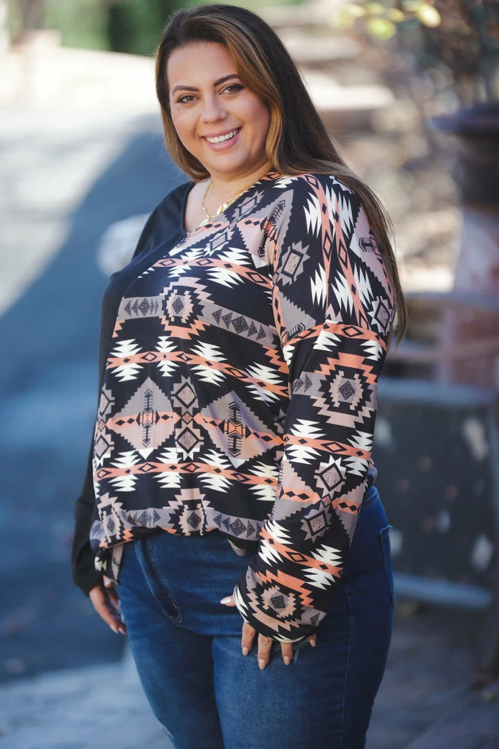 There are no words to express how amazing this top is. We LOVE the diagonal colorblock in the front and are OBSESSED with the twist top back. With a relaxed fit, this top features a v-neck, long sleeves and rounded hem.