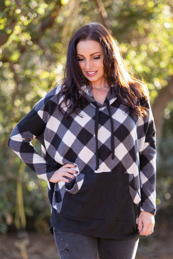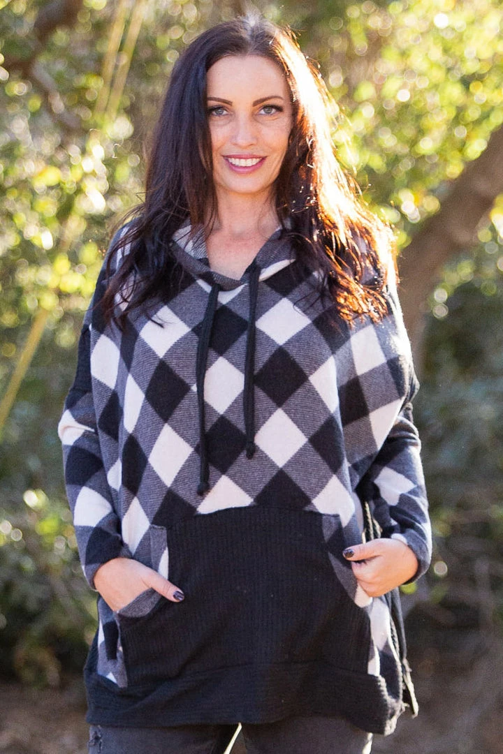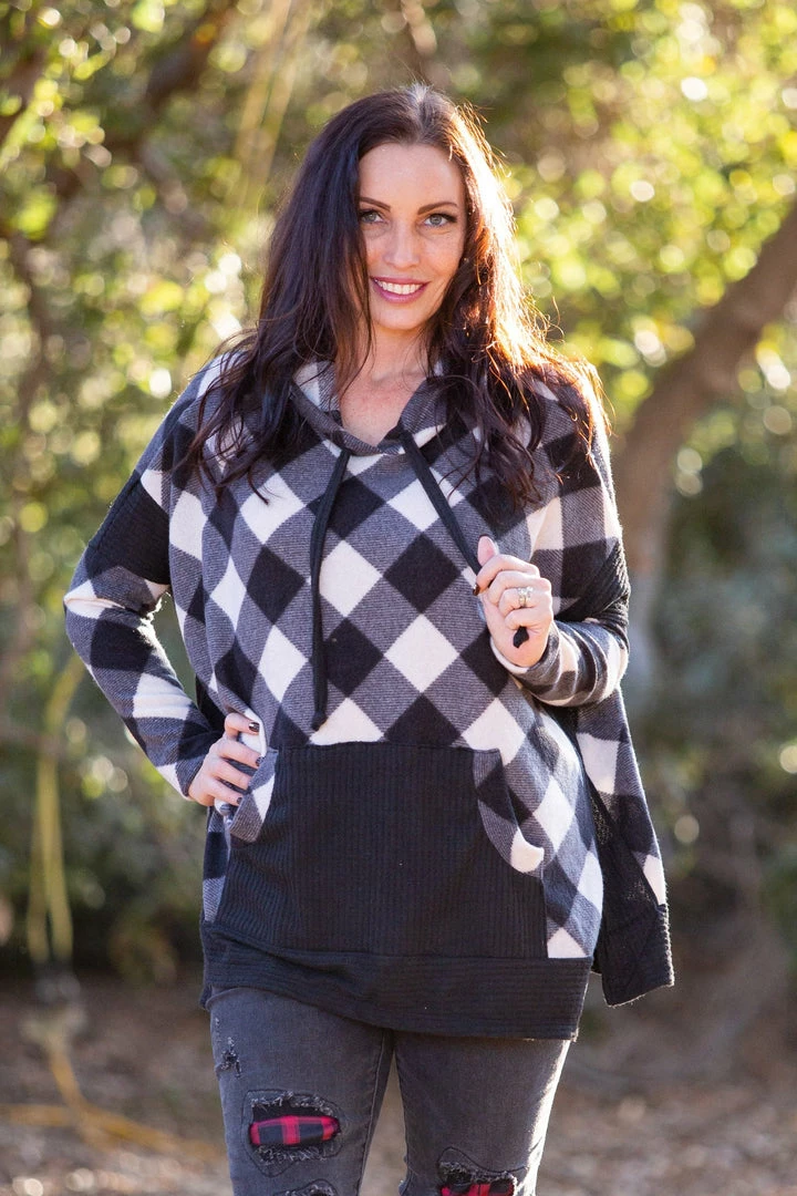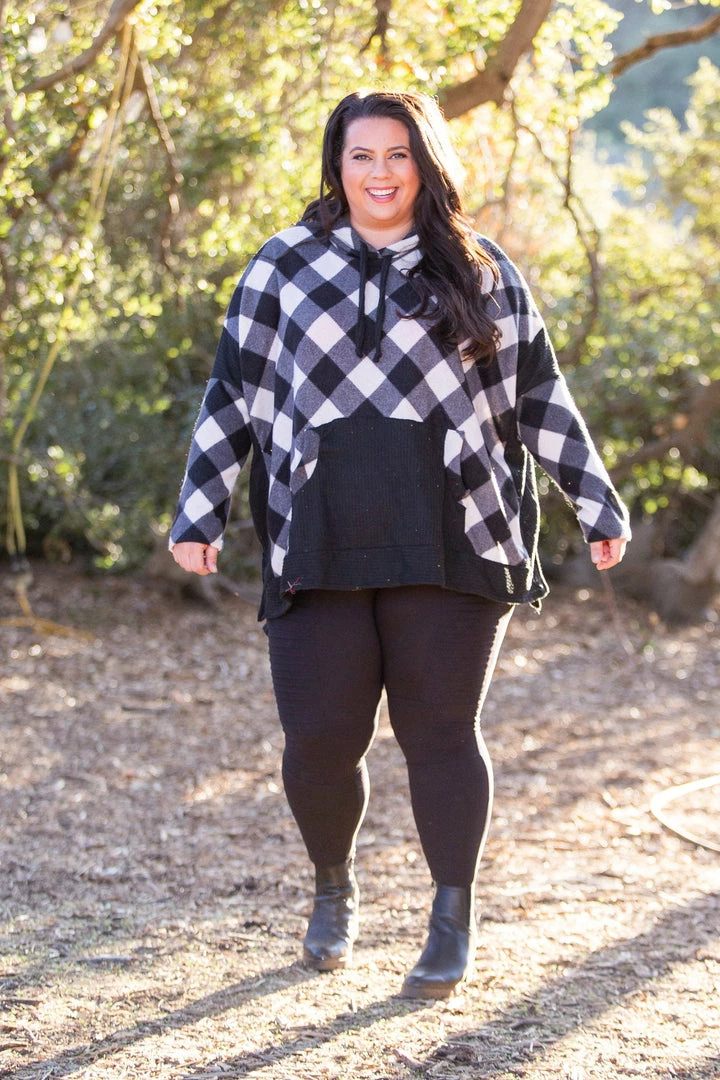 Looking for a warm, soft and cozy piece this season? Well look no further because this is the ONE! This hooded sweater has the most flattering oversized fit, with solid trim, a hi low hemline and sidelites.