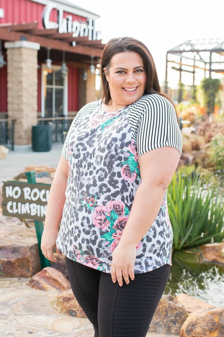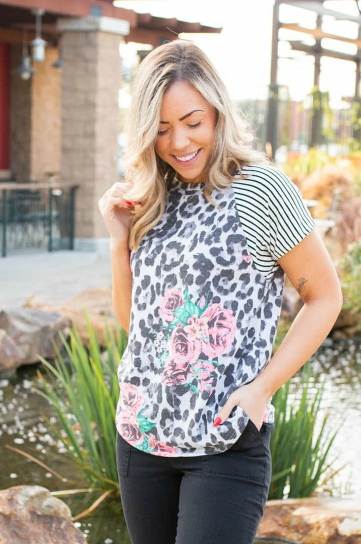 We are absolutely crazy about this short sleeve raglan. With a relaxed tapered fit, this top features a round neckline and round hemline.