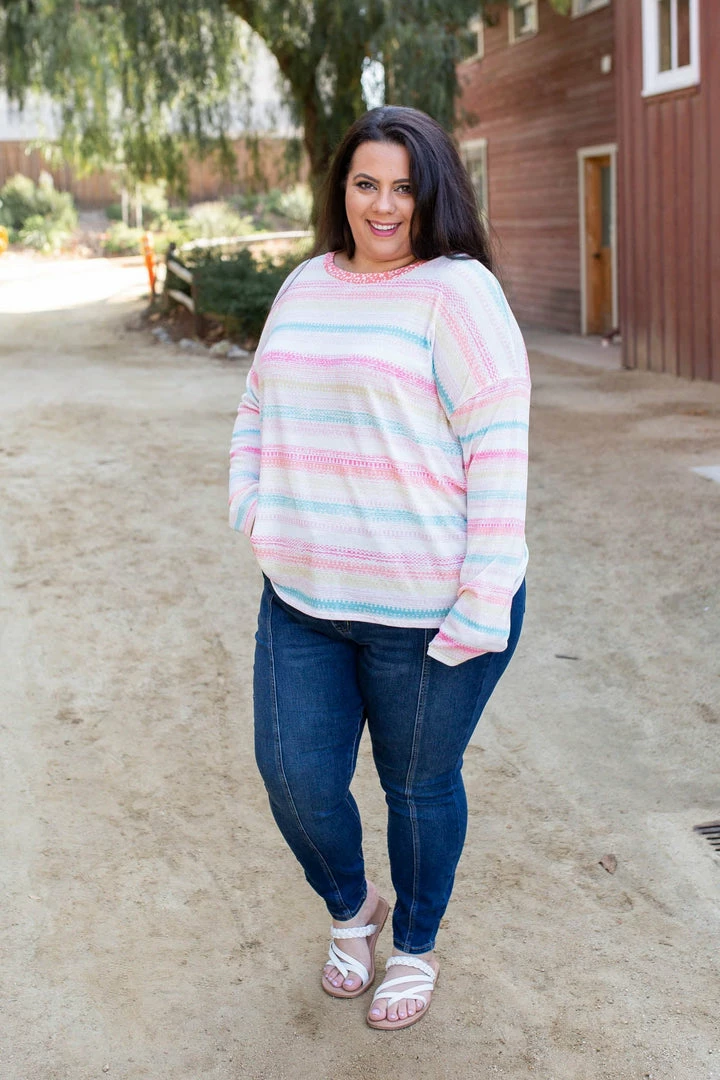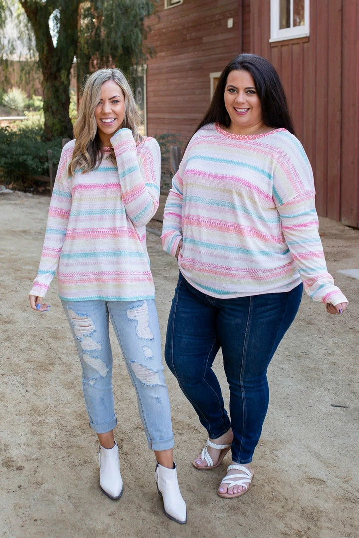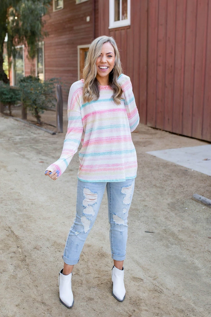 The charm of this long sleeve top is sure to set your soul on fire. Made from a lightweight, loose knit, this top features a relaxed fit, long sleeves and round neckline.