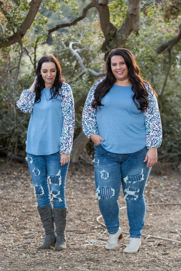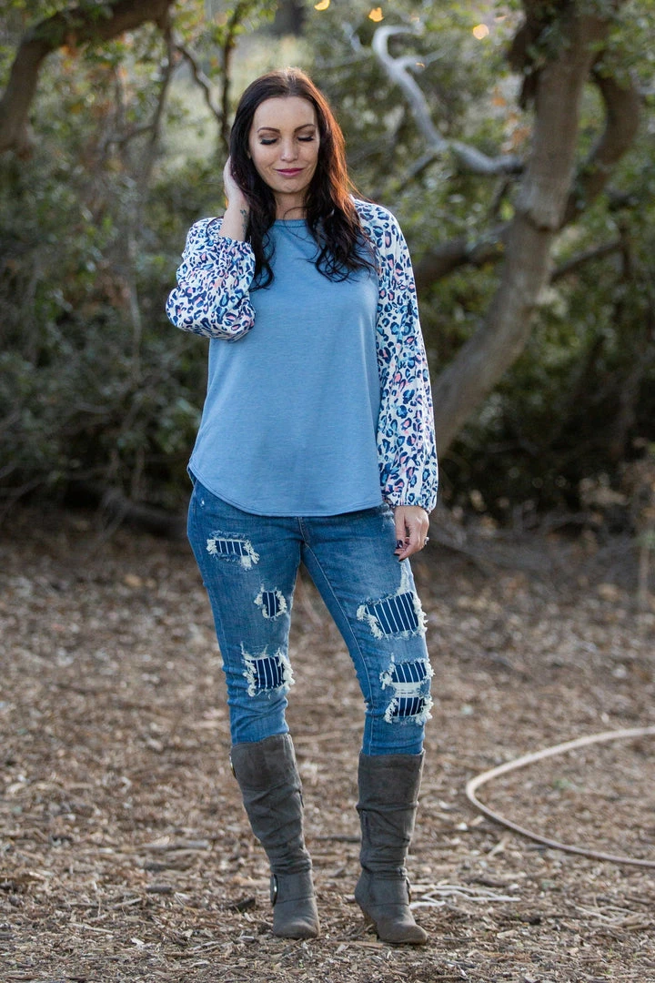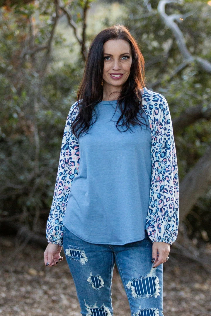 How delightful is this one of a kind puff sleeve raglan?! We can see this gorgeous top looking amazing on a snowy backdrop, as well as once we start transitioning into spring. Talk about a top that you can wear year round! Featuring a round neckline, banded balloon raglan sleeves and a rounded hemline.