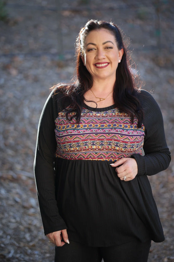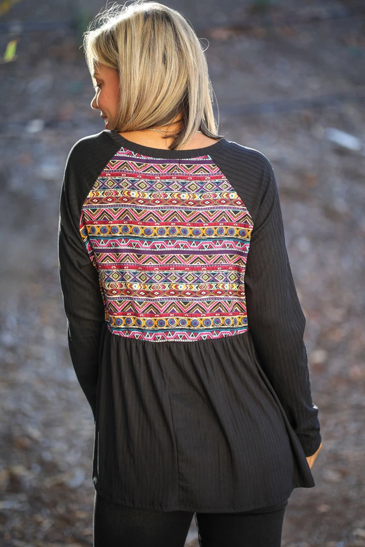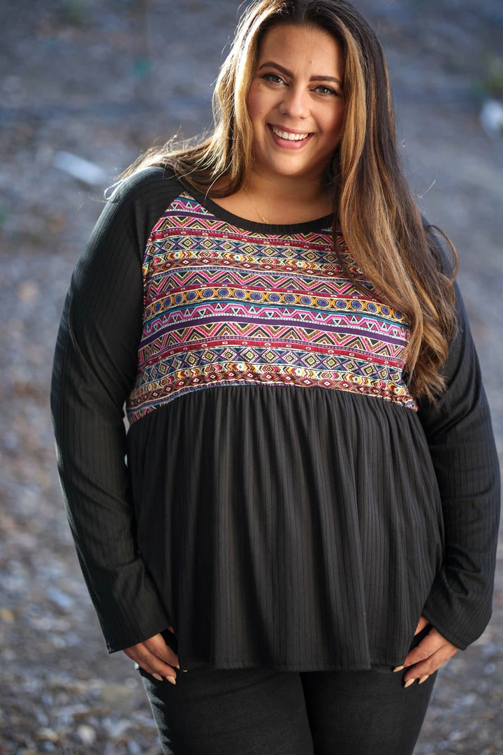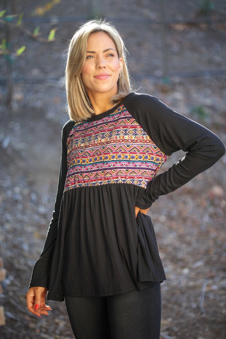 We are loving the desert night vibes in this super soft and flattering long sleeve baby doll. Made from the softest ribbed fabric, this top features a relaxed fit, long raglan sleeves and a round neckline.