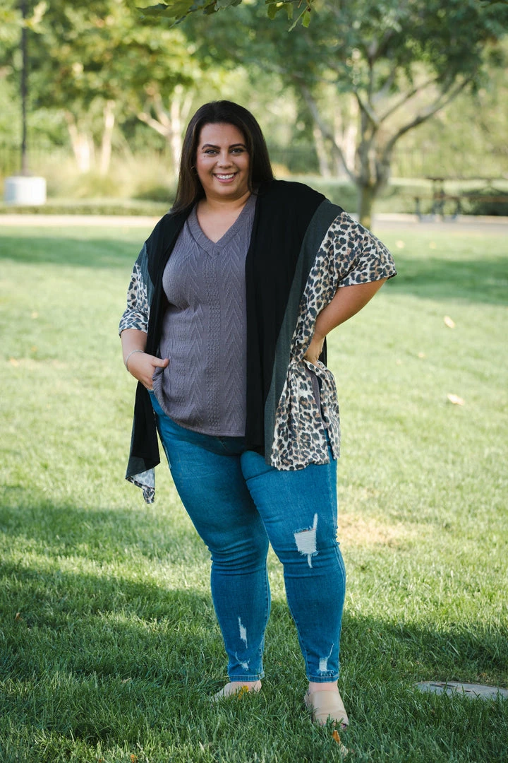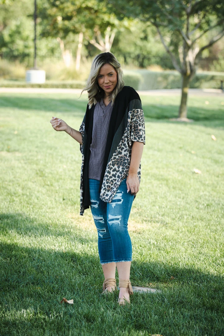 Drape yourself with this gorgeous, oversized 3/4 sleeve open face cardigan. We are obsessed over the vertical color blocking and how amazing this looks on all body styles.