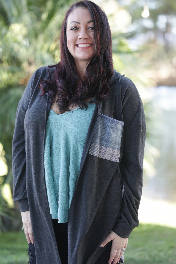 Add a little warmth to wardrobe this season with this multi colored plaid hooded cardigan. With a roomy fit, this cardigan features an open face and side pockets.