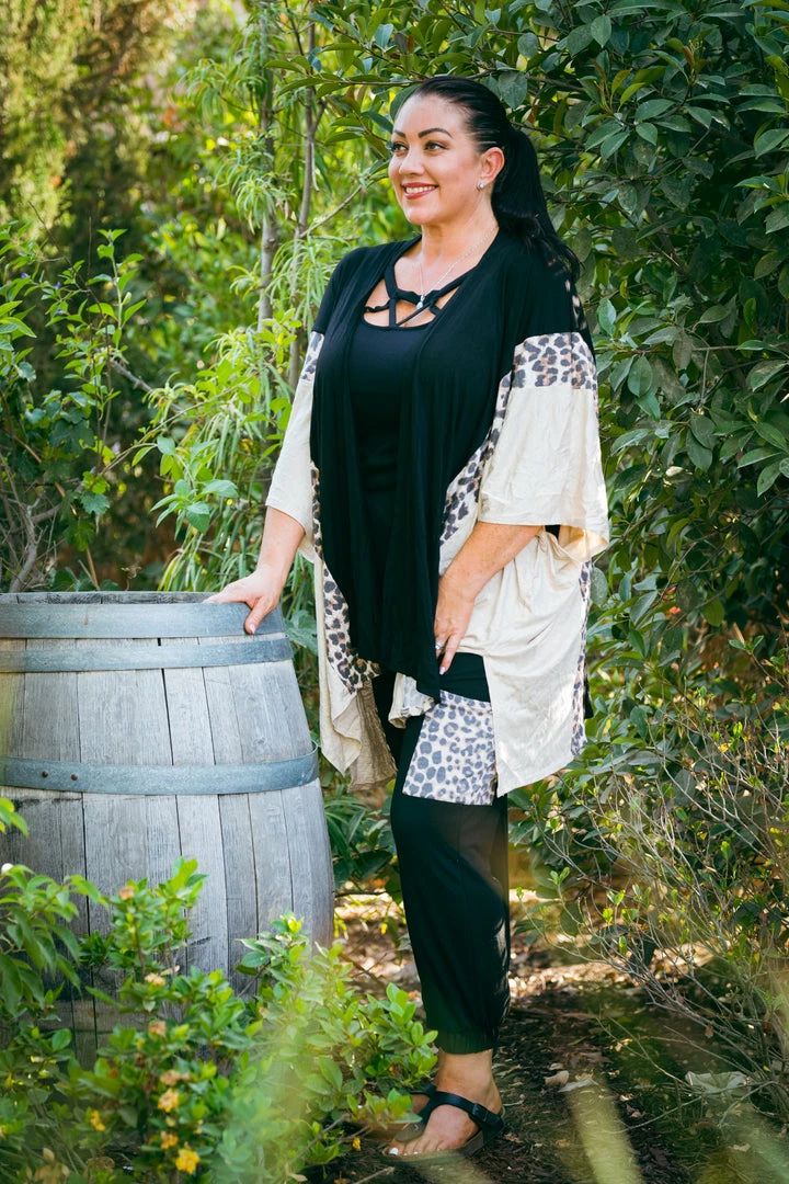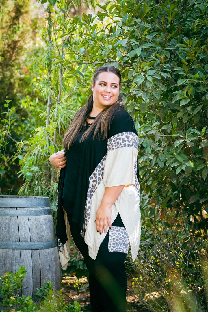 Layer yourself with this gorgeous, oversized 3/4 sleeve open face cardigan. We are obsessed over the vertical color blocking and how amazing this looks on all body styles.