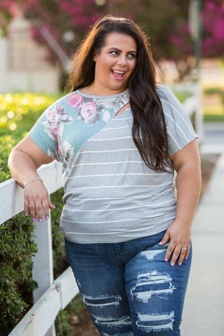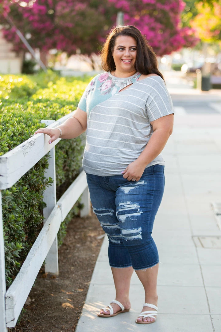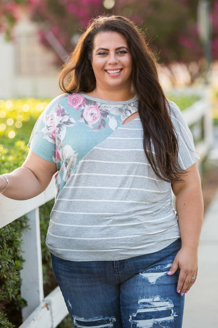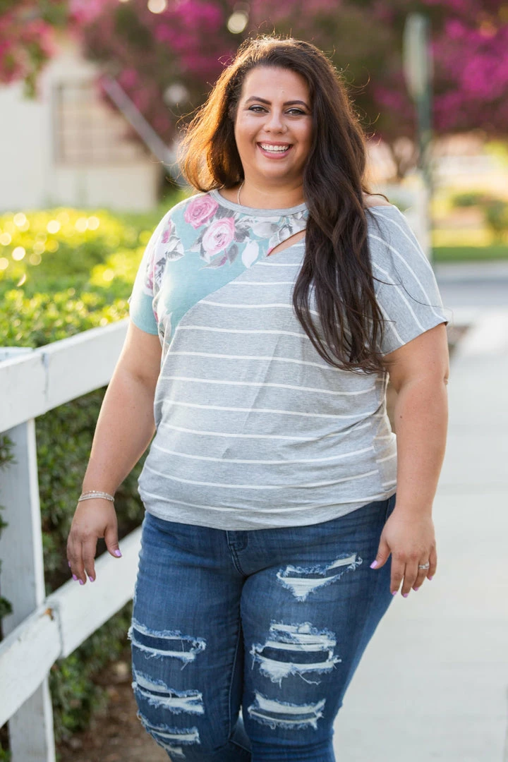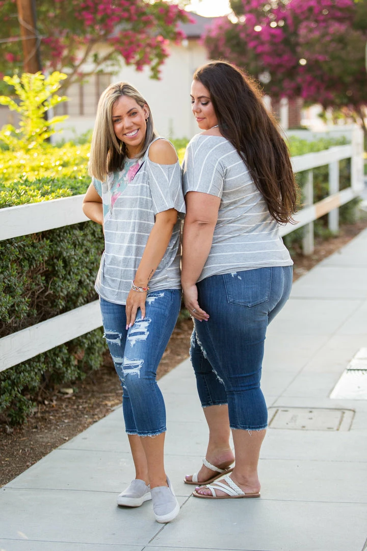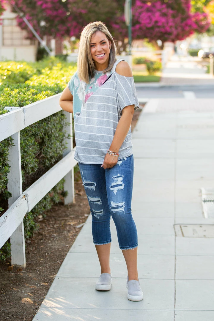 We love how flirty and fun this short sleeve top is. Made from the softest jersey fabric, this top features short dolman sleeves with one cold shoulder, a round neckline and rounded hem.