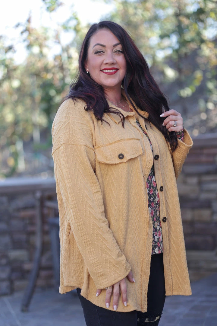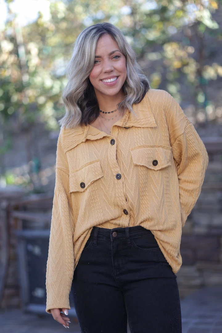 You cannot go wrong with this amazing shacket! Not only is it nice and cozy, but that knit is to die for! With an oversized fit, this top features a button closure, long sleeves, raw edge details and utility pockets.