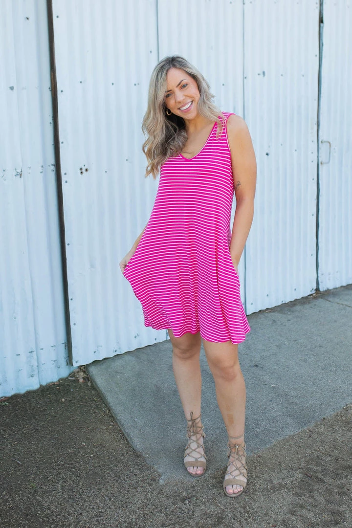 The MOST perfect swing dress in all the land! Featuring the classic swing fit, with a v-neck and pockets! This dress will absolutely, without a doubt, become your go-to!