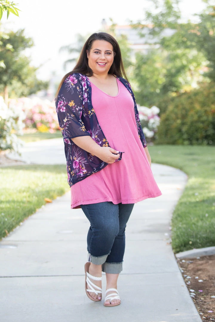 The perfect layering piece for the Spring & Summer. This lightweight floral print kimono features an open front with 3/4 sleeves. Wear it as a cover up ,or a layering piece. The options are endless with this beauty.