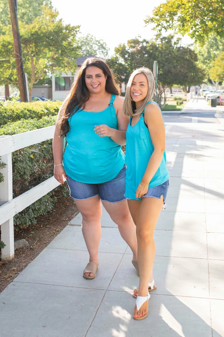 This unique and fun take on an everyday tank has us swooning. With a relaxed fit, this top features a round neckline and adjustable buckle shoulder straps so you can really make this piece fit your body the absolute best. Â