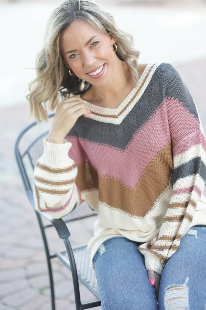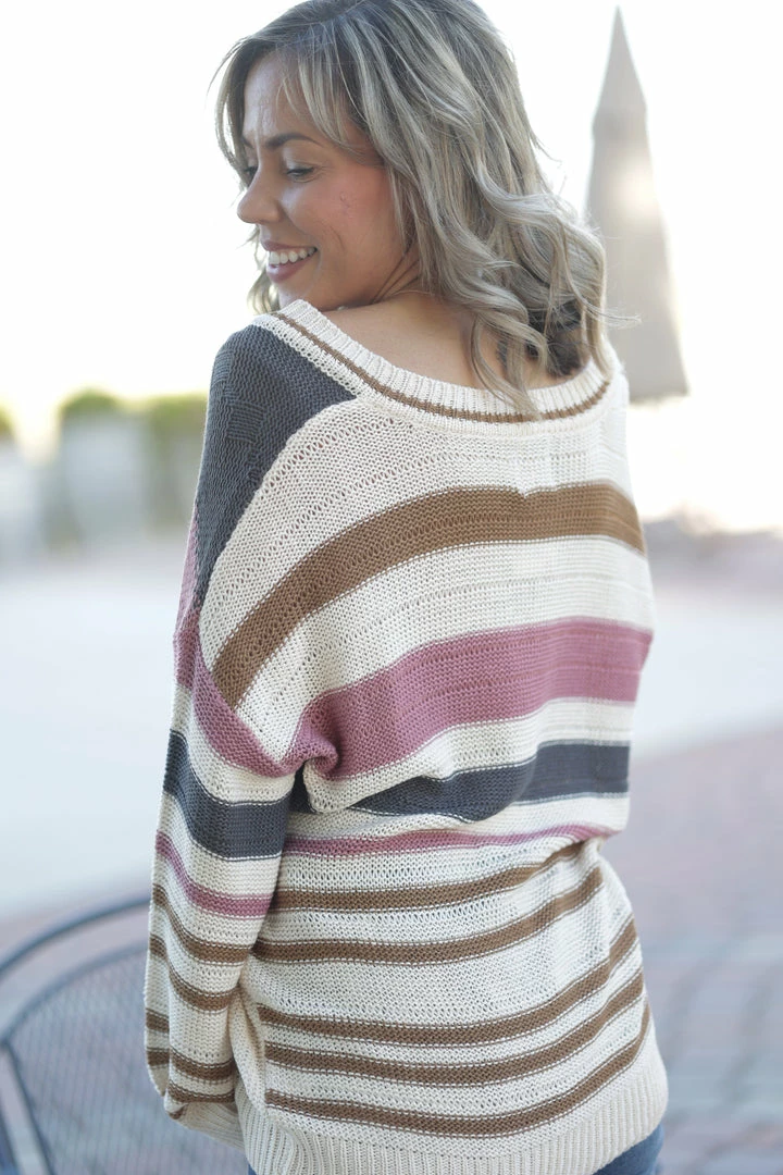 This loose knit sweater is the perfect piece for ALL the seasons! With a relaxed fit, this sweater features a v-neck and long sleeves.