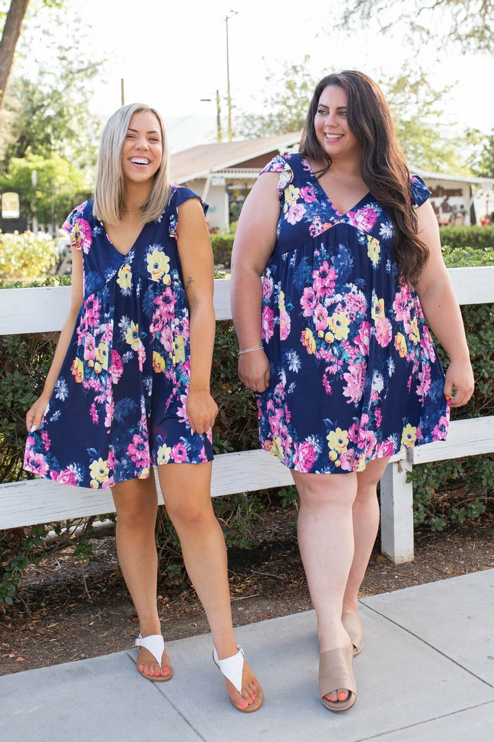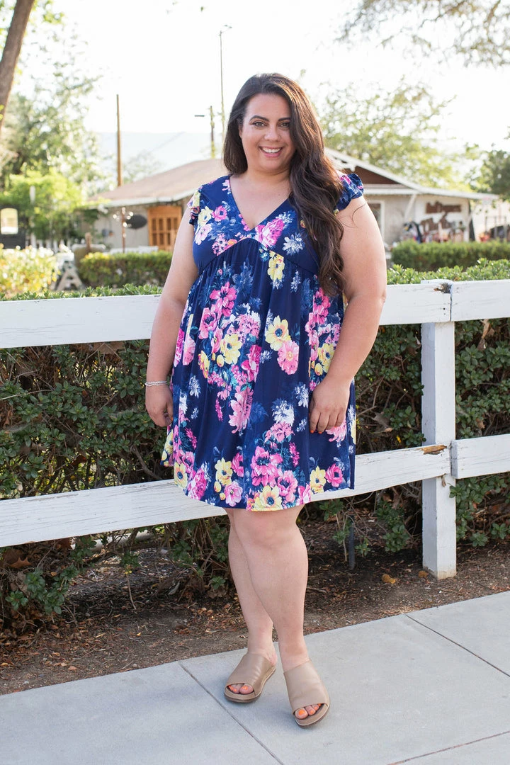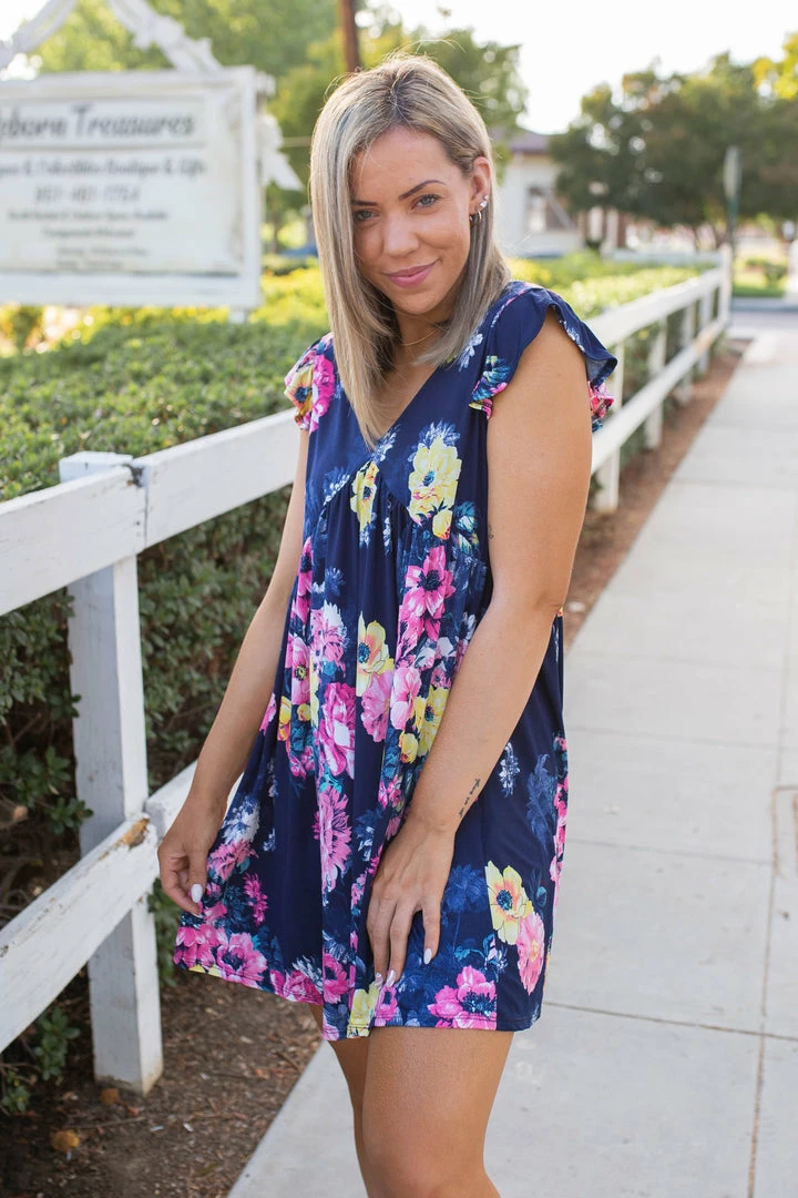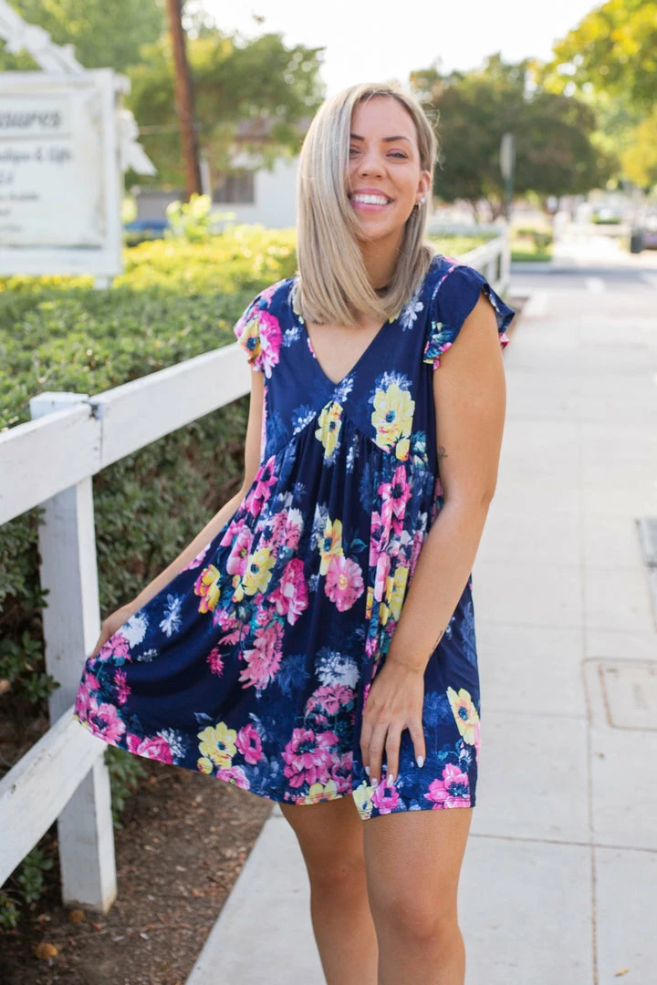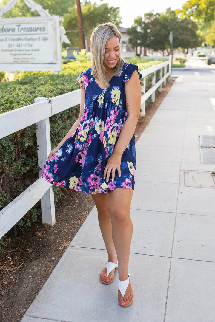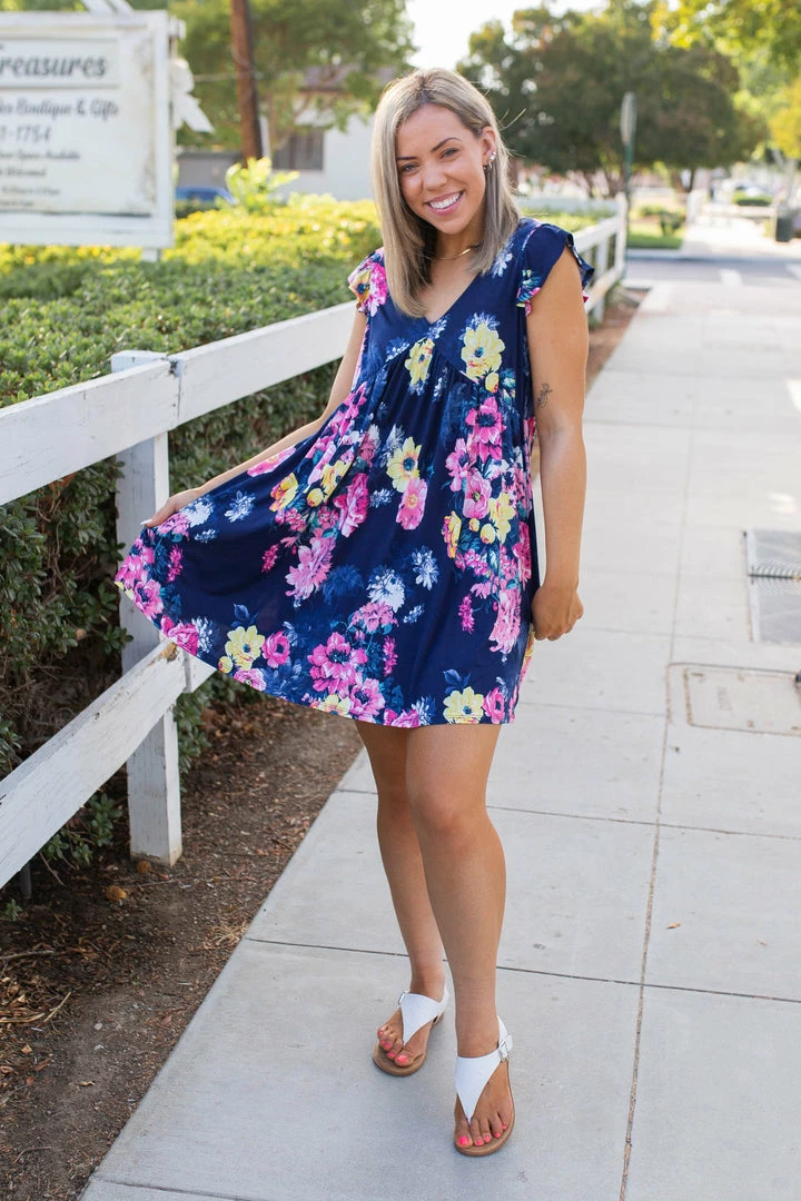 This little summer dress is absolutely perfect for those warmer days. With a relaxed a-line frame, this dress features a v-neck, empire waist and flutter sleeves.