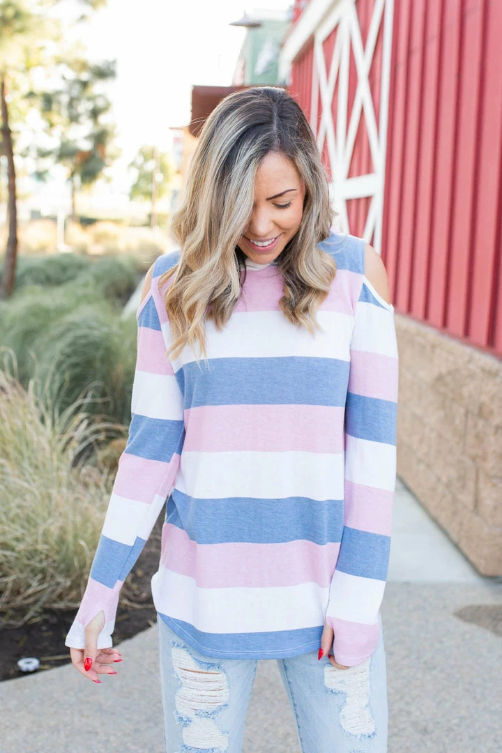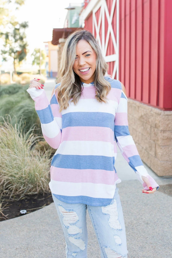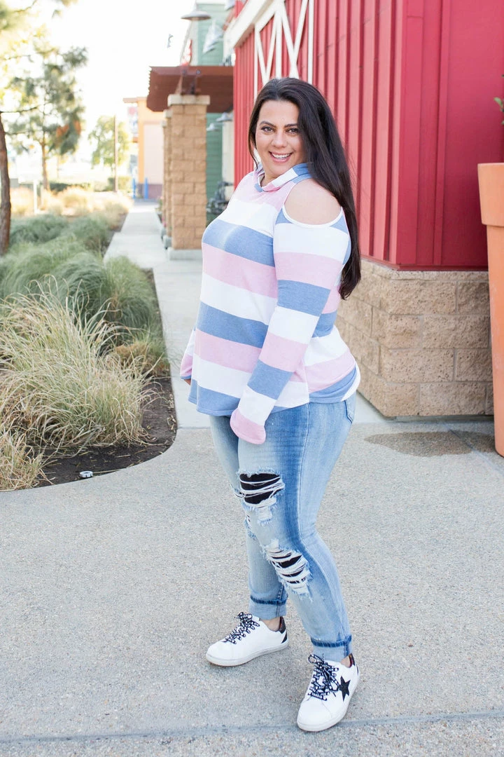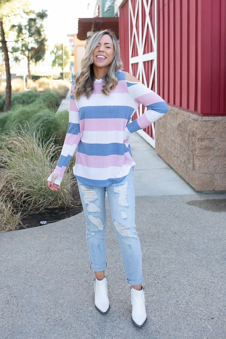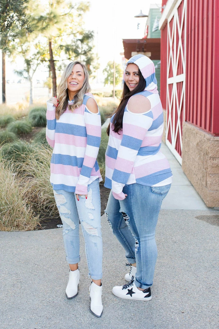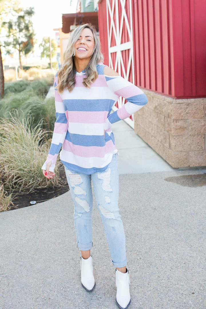 This amazing, lightweight cold shoulder hoodie is the perfect cover for any season! With long sleeves that also have a thumbhole, this hoodie will be your next go to piece!