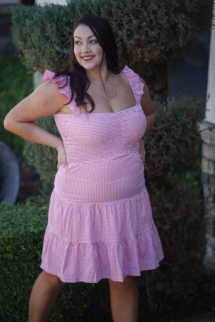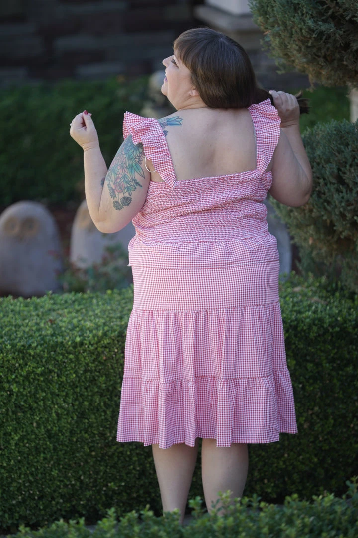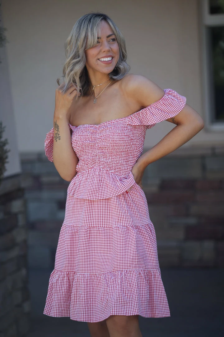 THE best dress to wear to any outdoor gathering, whether it be patriotic or just a casual picnic. Made from a lightweight woven material, this dress features a sweetheart neckline with ruffled straps, tiered body and ruched bodice.