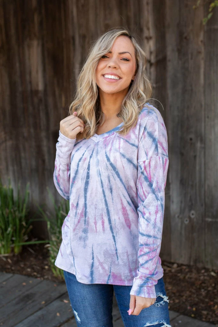 This long sleeve top gives us such a warm and fuzzy feeling. Featuring a relaxed fit, long sleeves and v-neck.