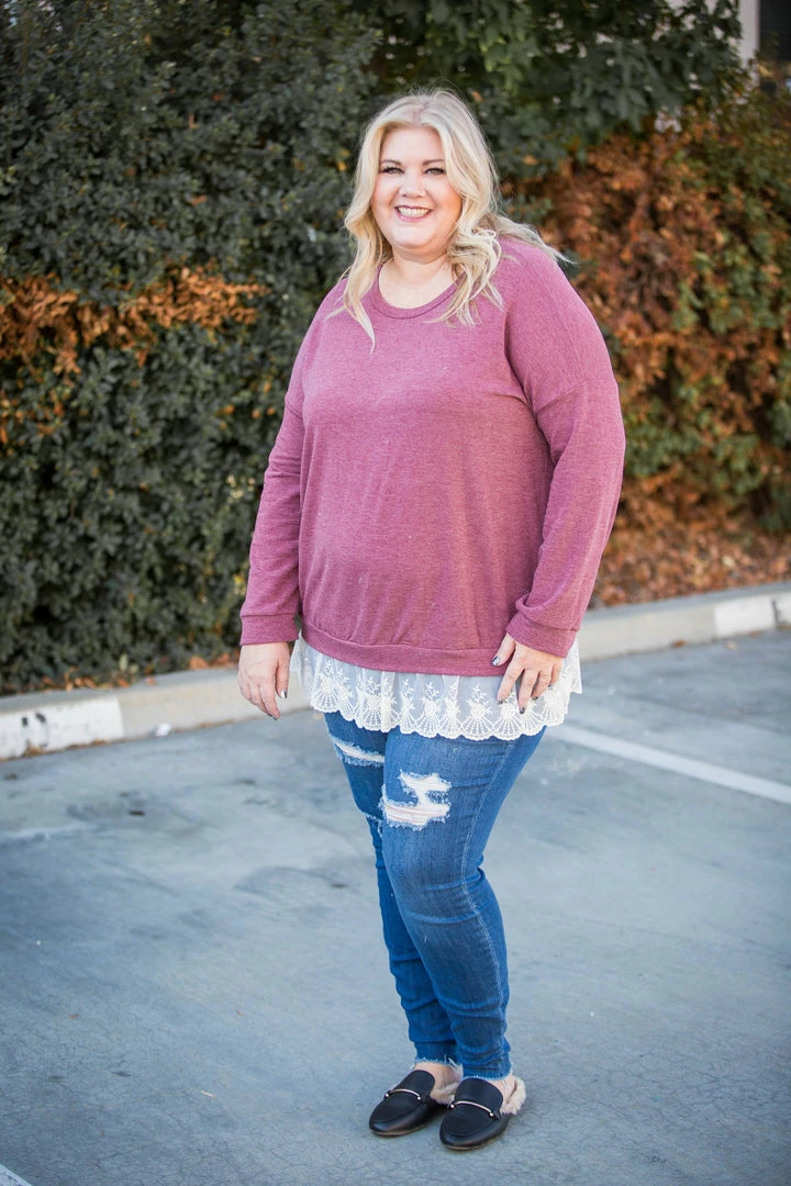 Add some extra flare to your wardrobe with this gorgeous ruffled pullover! Featuring a relaxed a fit, long sleeves, round neckline and a ruffled eyelet hem.
