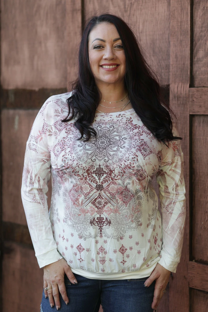 This buttery soft long sleeve pullover is the perfect lightweight cover. With a relaxed fit, this top features long sleeves, a round neckline and banded hem.