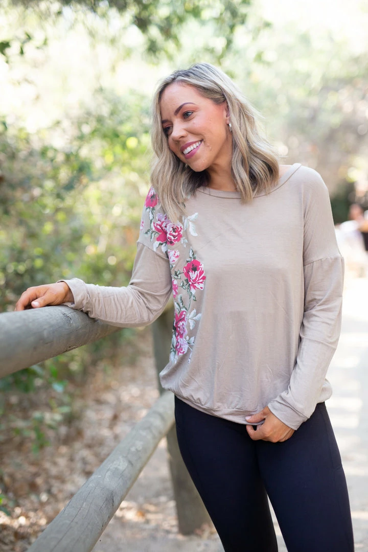 The perfect top to transition into fall with! Wear it as a lightweight pullover or on its own. With a relaxed fit, this top features a round neckline, long sleeves and a banded hem.