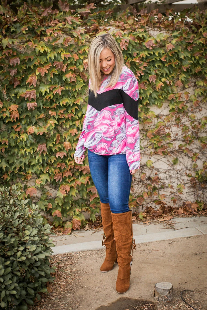 This long sleeve pullover is not just gorgeous, but it’s also very comfortable. Featuring a round neckline, Kangaroo pocket, round neckline and relaxed fit, this will sure become one of your go-tos.