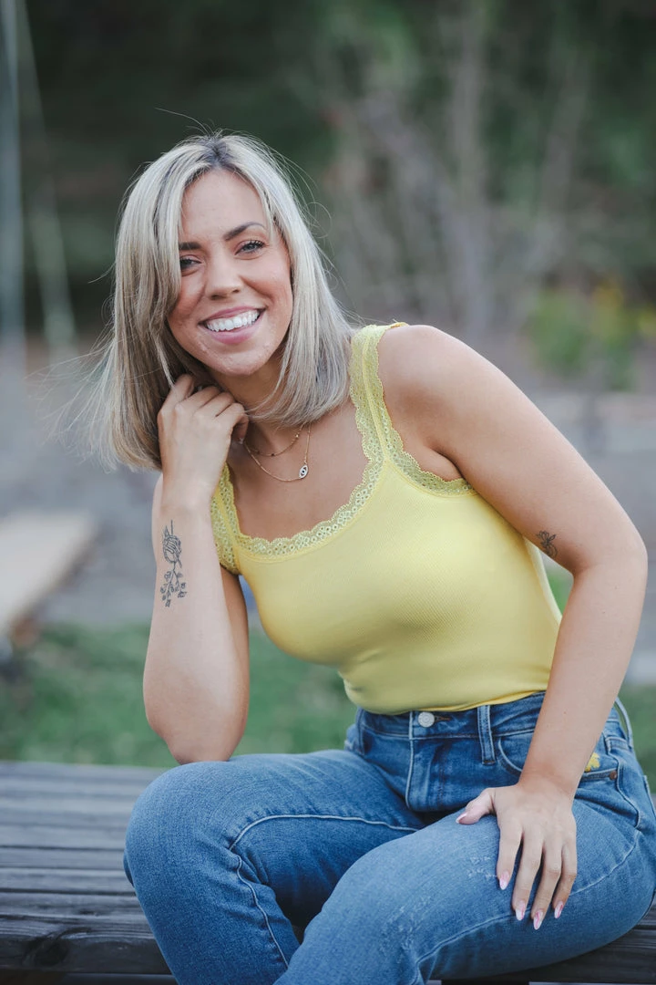 Meet your next go to piece! This bodysuit is so easy to pair with anything, and the thicker ribbed fabric keeps you feeling fit and secure. With no fuss straps, this bodysuit features a button enclosure and lace trim details.