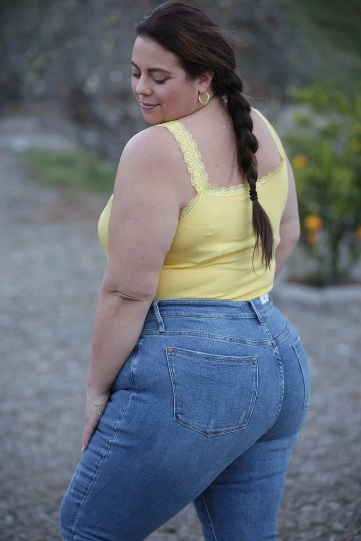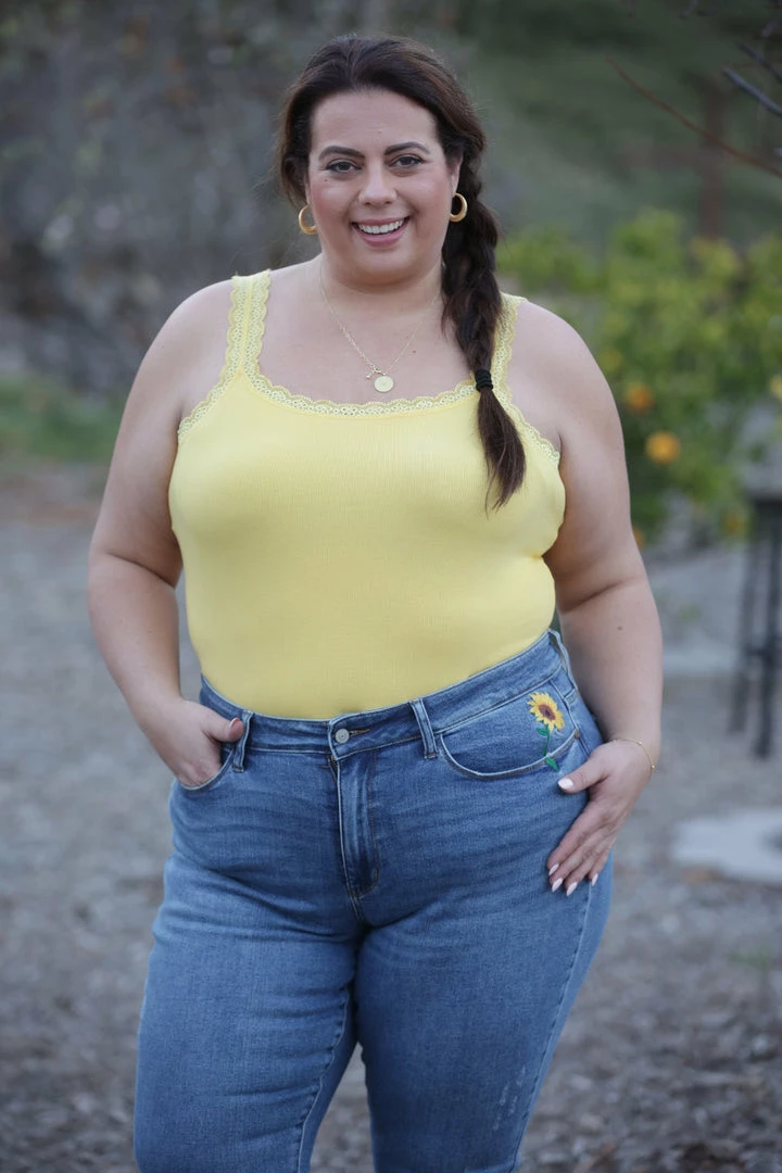 - Callie is 5’8 wearing size 3X (Paired with Sunflower Dreams Relaxed Fit Judy Blues)
