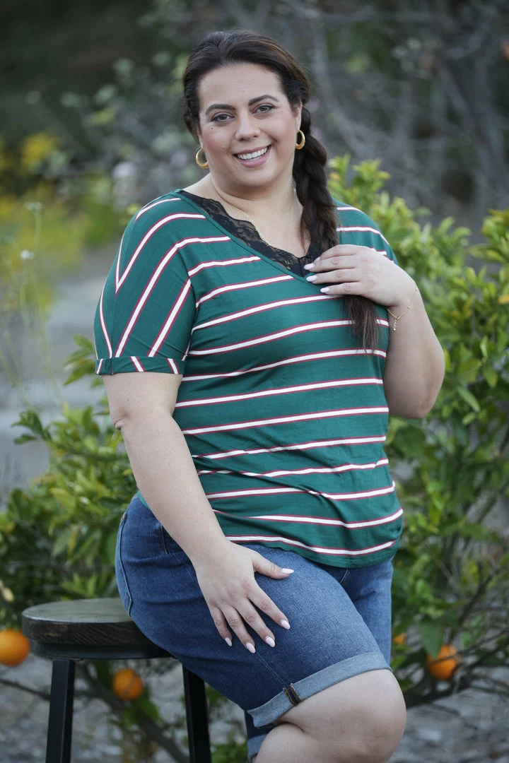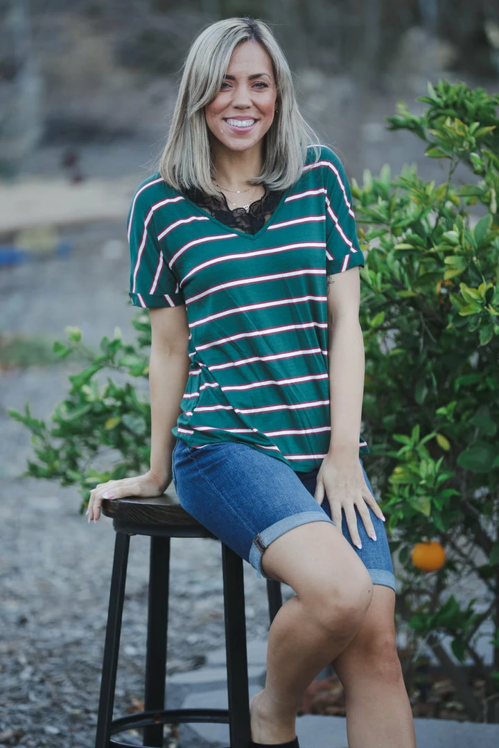 We are loving this top…where sweet meets edgy! With a relaxed fit, this top features a v-neck with lace trim, short cuffed sleeves and a rounded hem.