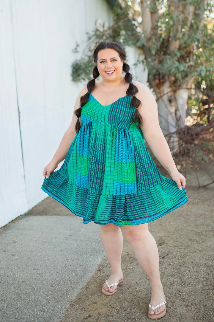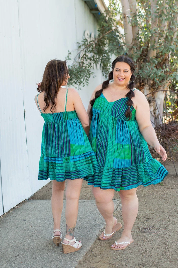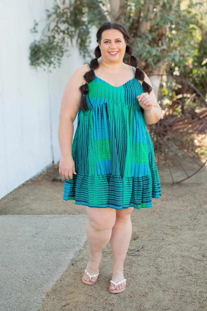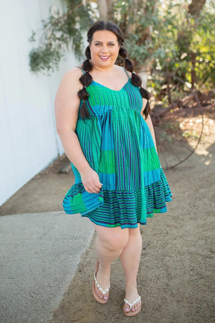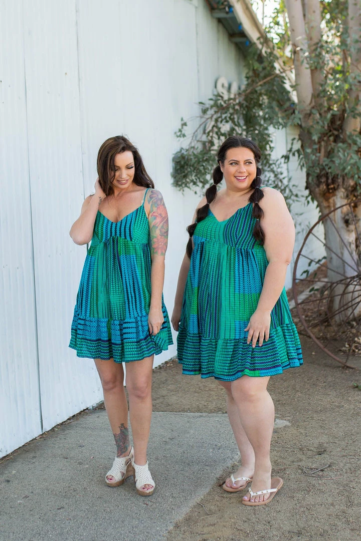 You will look as beautiful as a mermaid in this geometric printed ruffled sundress. With a relaxed fit, this dress features an empire waist, ruffled hem, v-neck and spaghetti straps. The back also has an elastic band for the perfect fit.