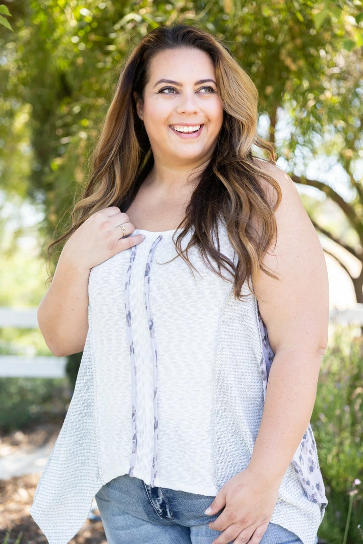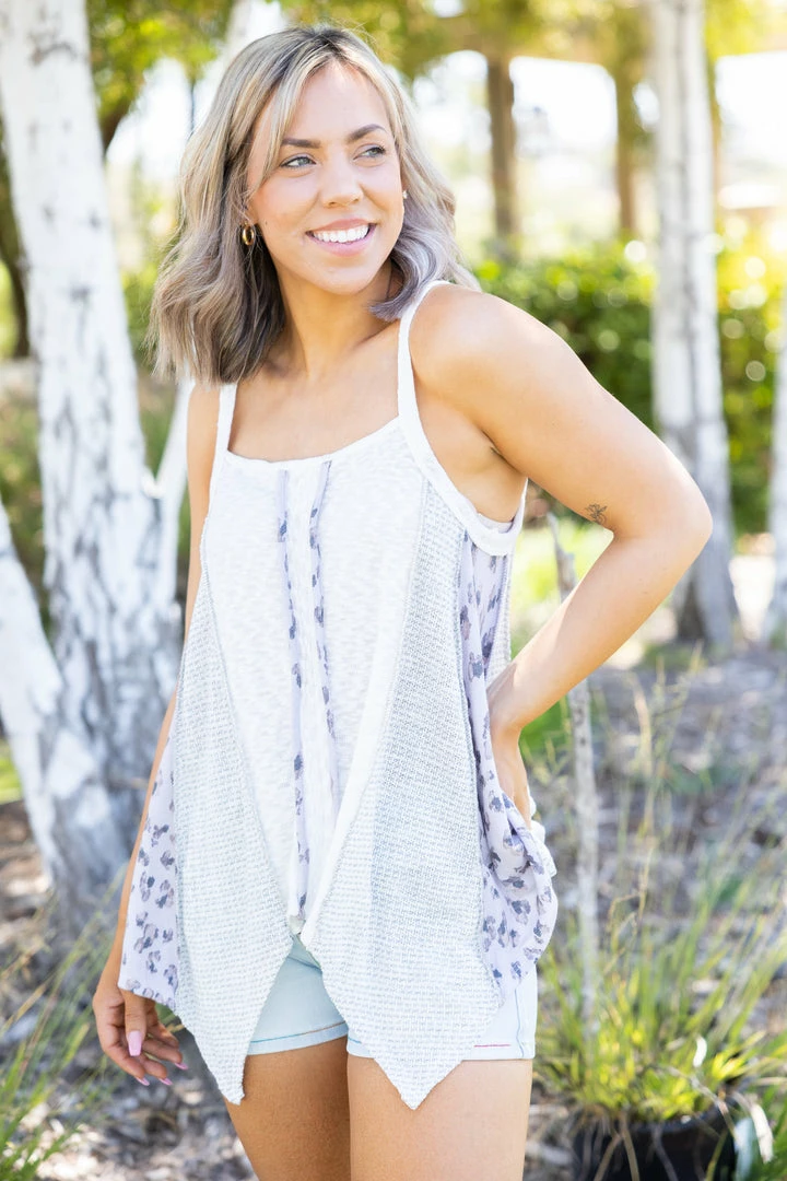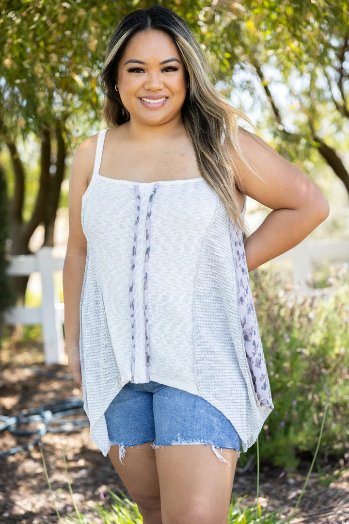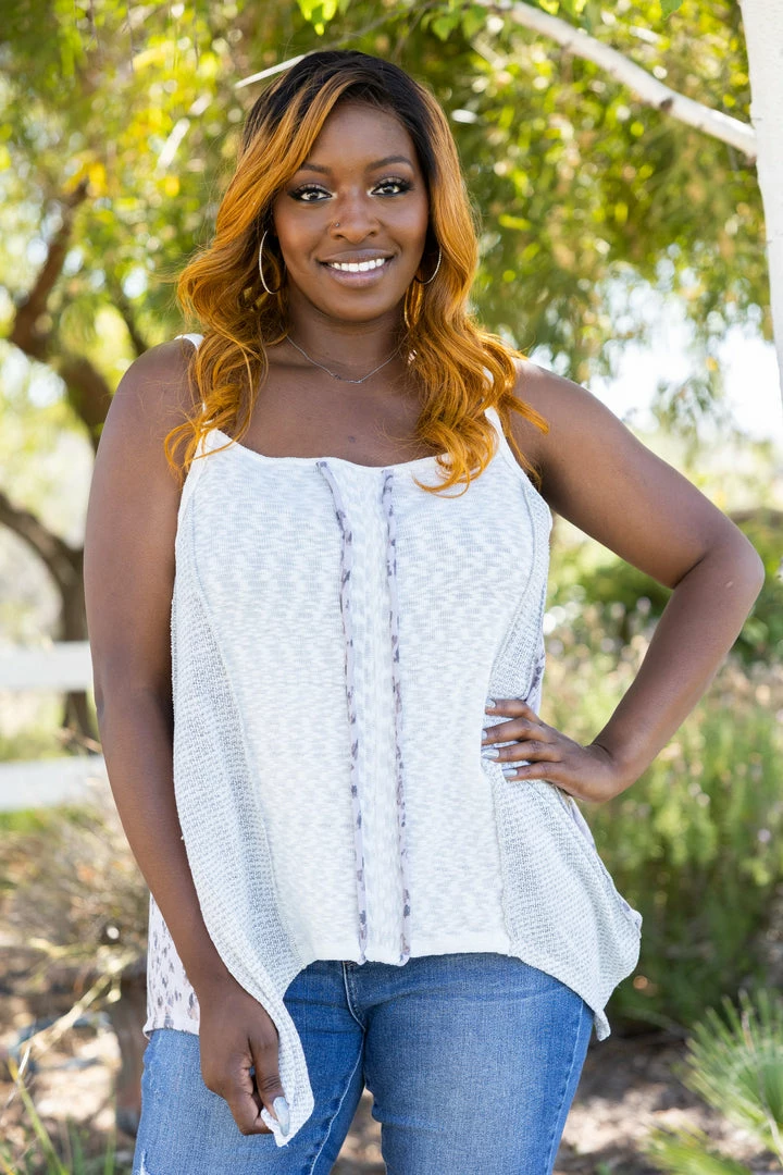 This is the tank you’ve been dreaming of all your life! The asymmetrical hem gives the perfect flowy look, and the combinations of the different fabrics give such a unique look. With a relaxed fit, this top features a square neckline, out seam overlocking reverse stitching and 1″ shoulder straps.