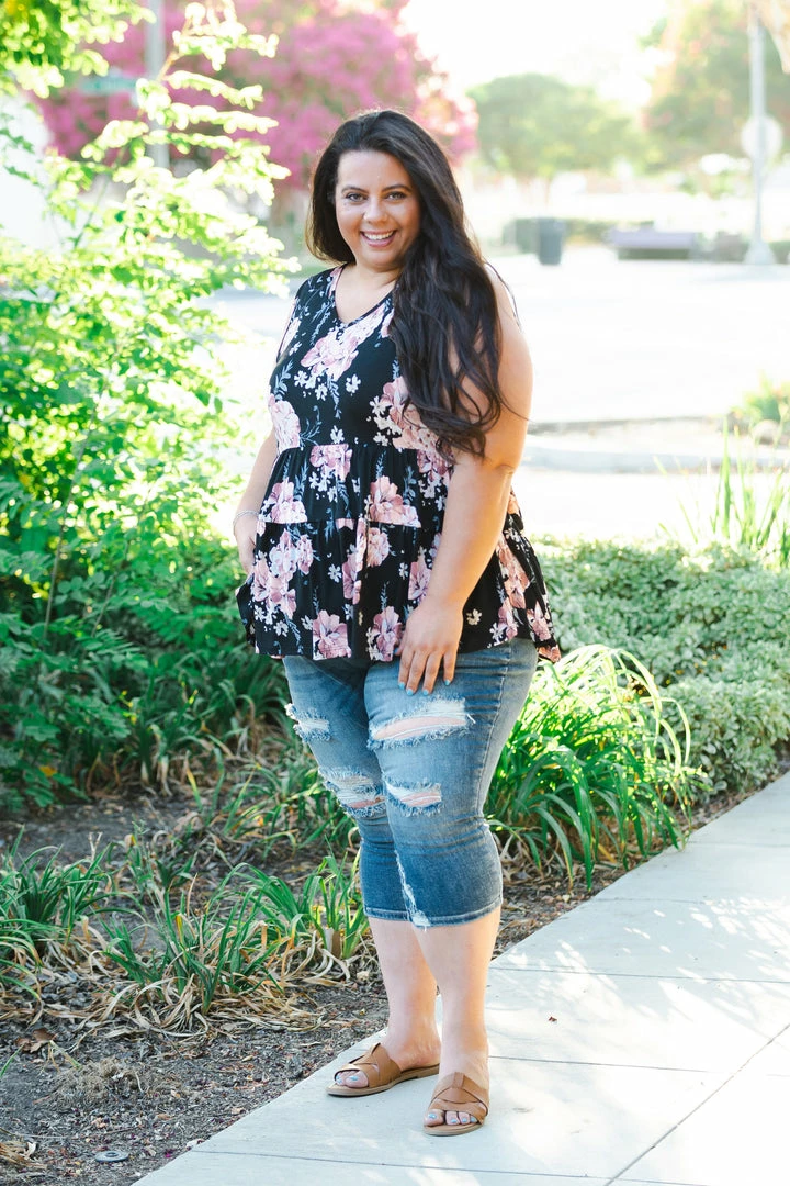 Made from bulgari fabric, this tiered babydoll is to die for! This top has amazing stretch and features a v-neck and tiered hem.