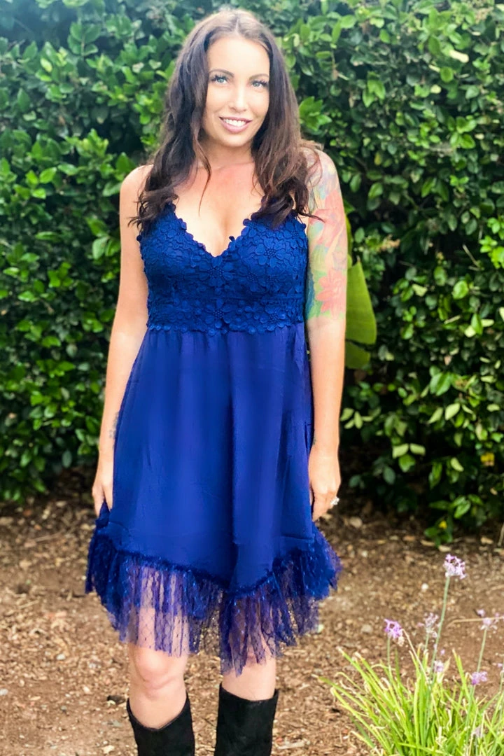 That’s right, this all in one dress comes with a built in bra! Talk about effortless and gorgeous. It features double adjustable straps, padding and a thick back band to keep you feeling supported and comfortable with a gorgeous rayon skirt with lining and lace hem. Let’s not forget about those pockets! Easily dress this one up for a romantic night out, or down for a day around town.