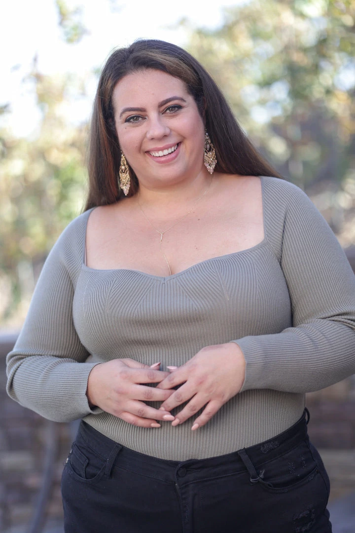 - Callie is 5’8 wearing size 3X (Paired with Jet Black Distressed Judy Blue Skinnies)