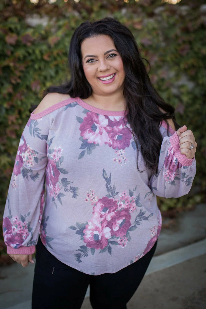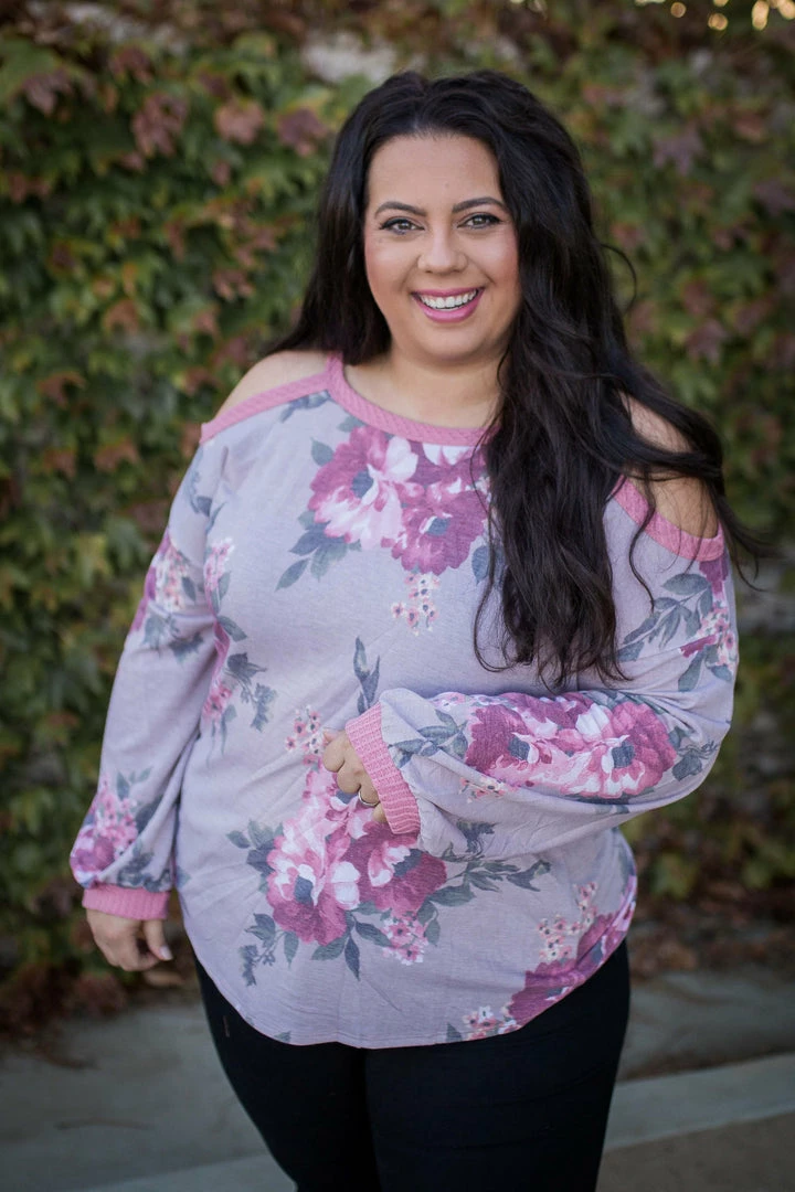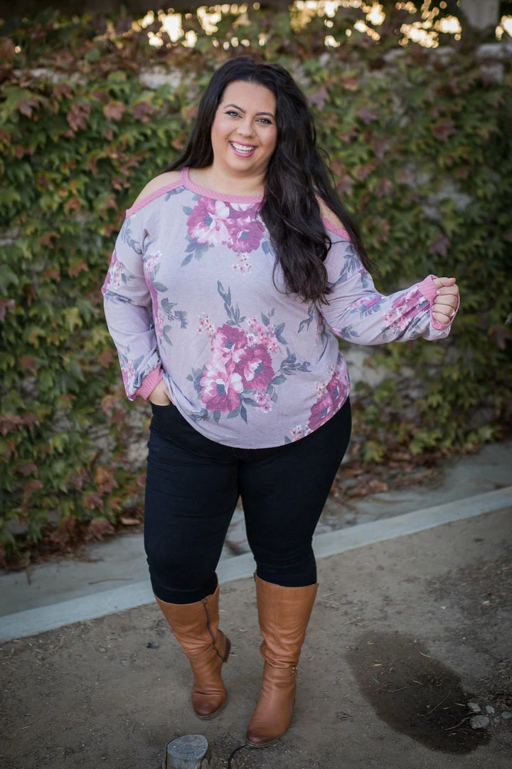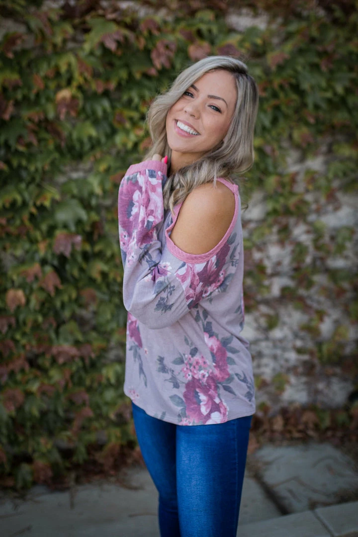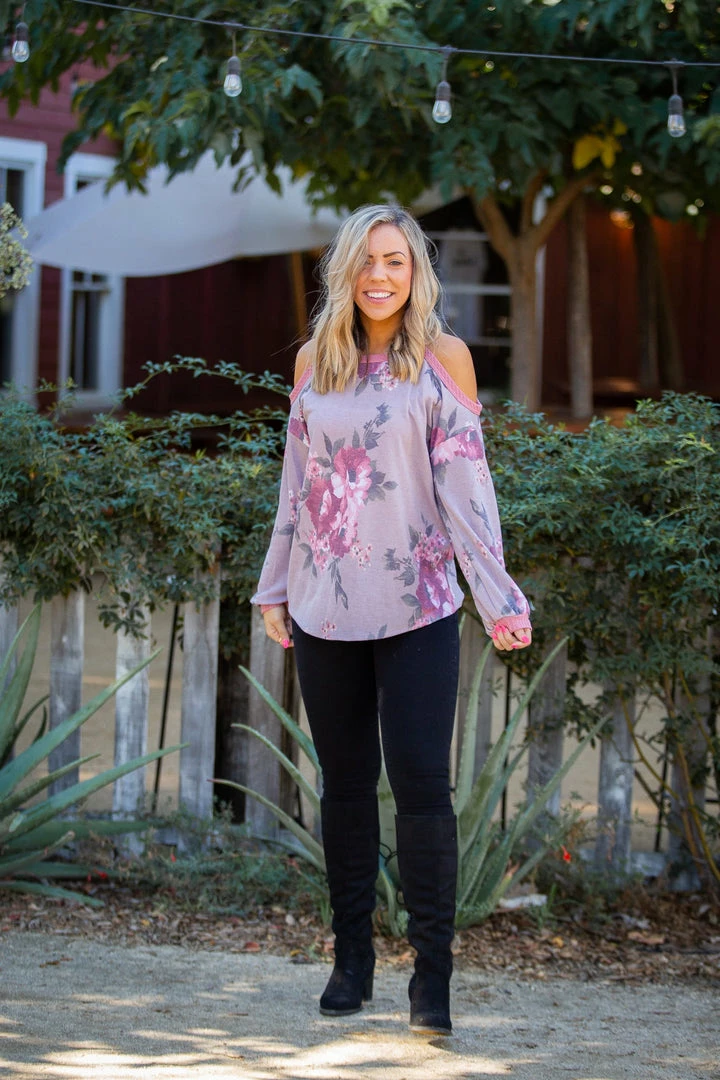 This cold shoulder top has us totally smitten. With a relaxed fit, this cold shoulder features a round neckline with waffle knit trim and long sleeves.